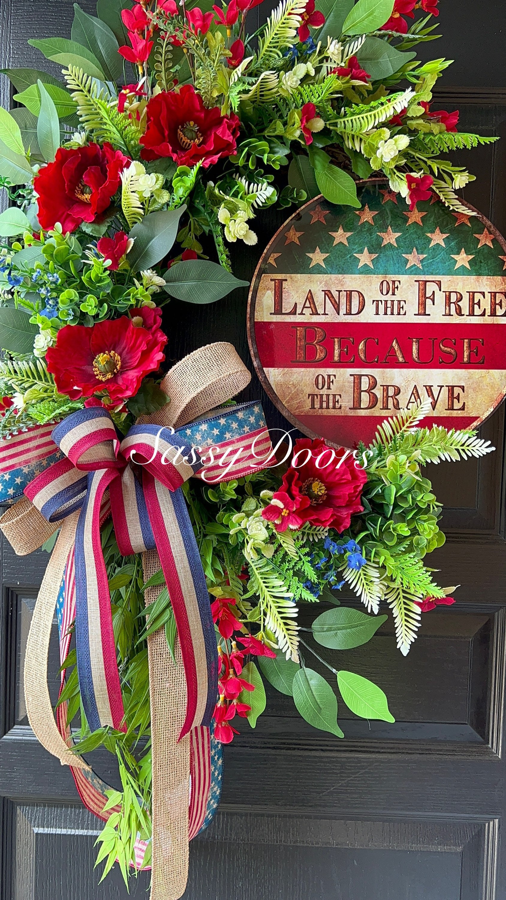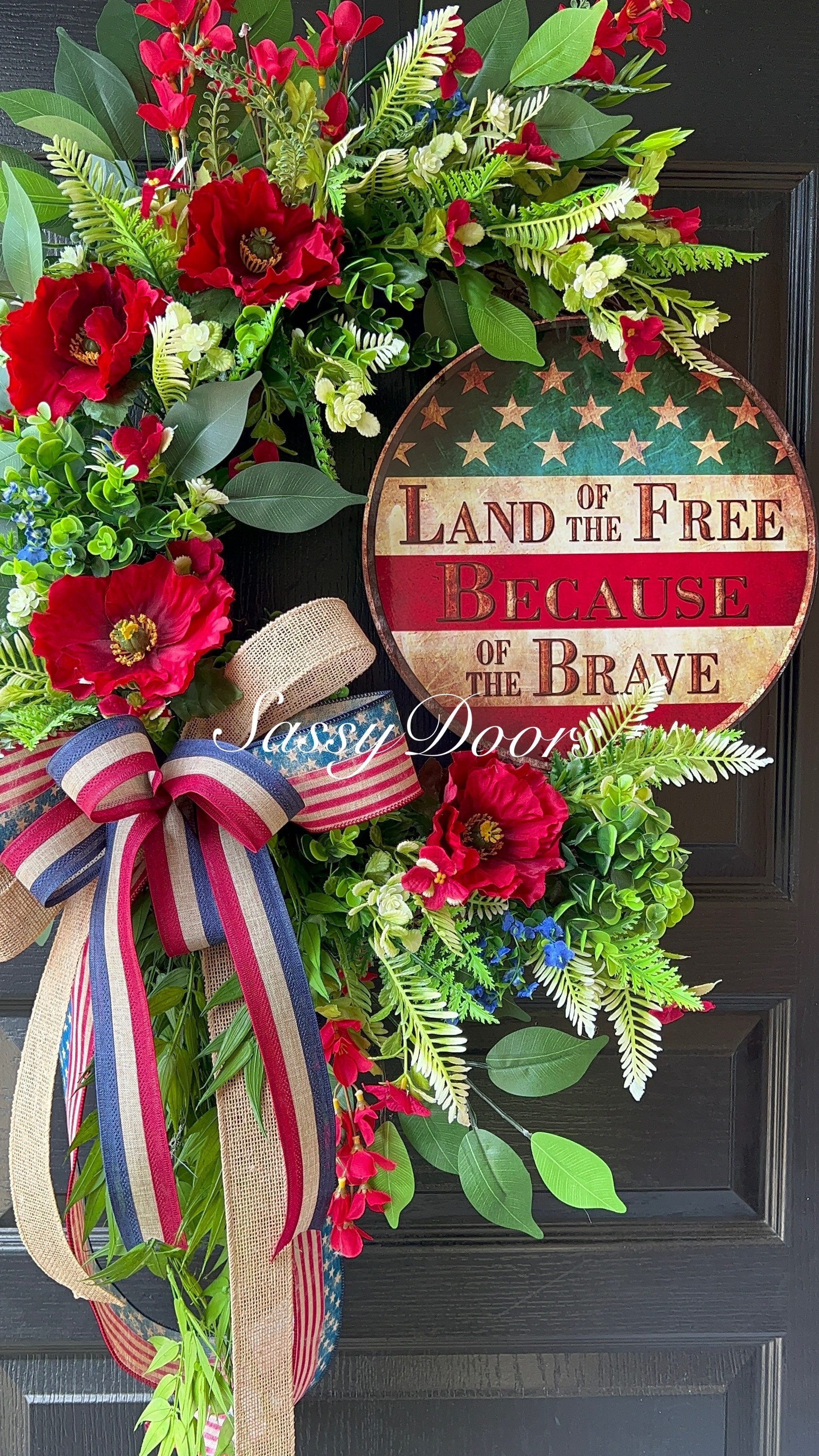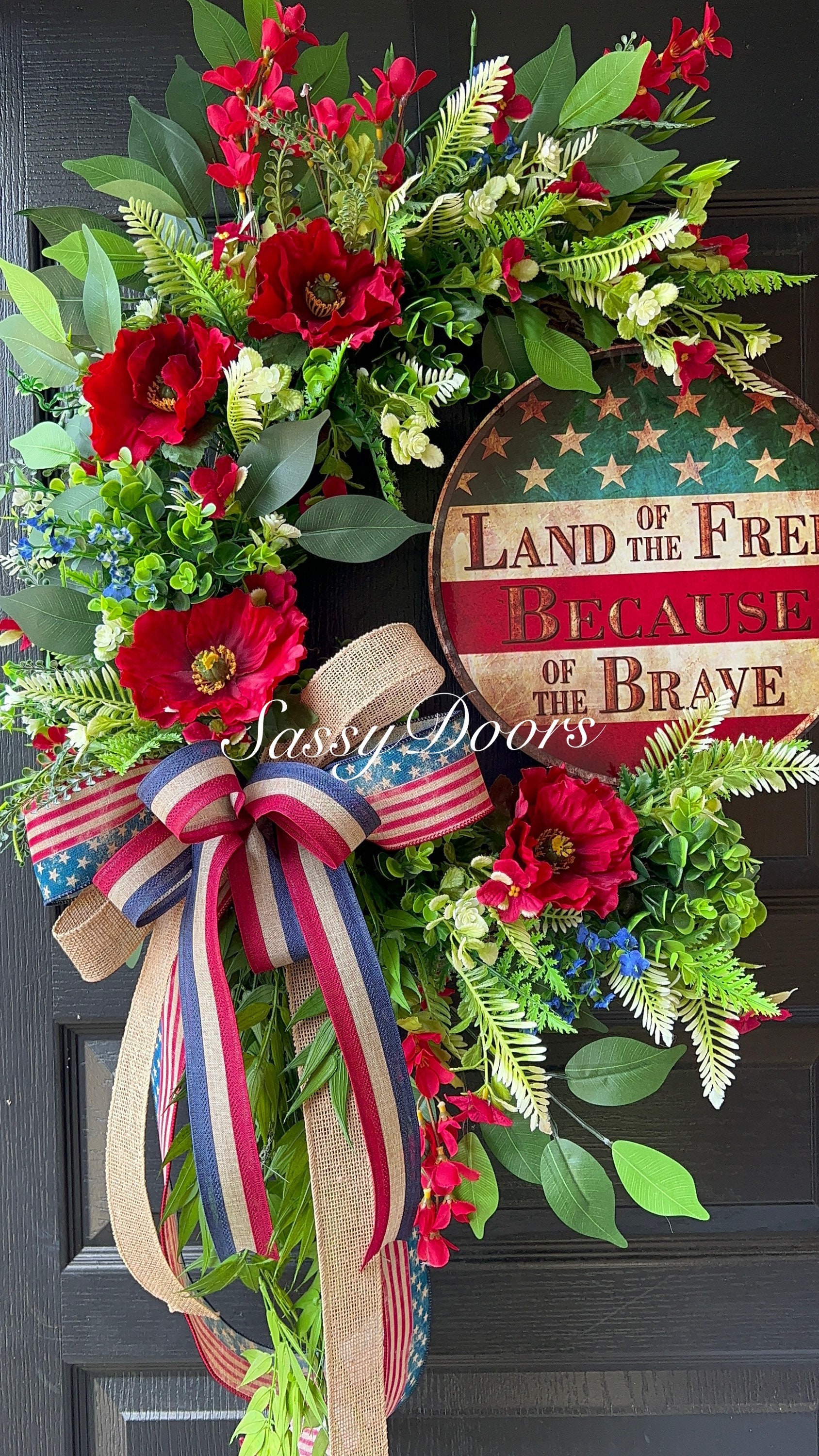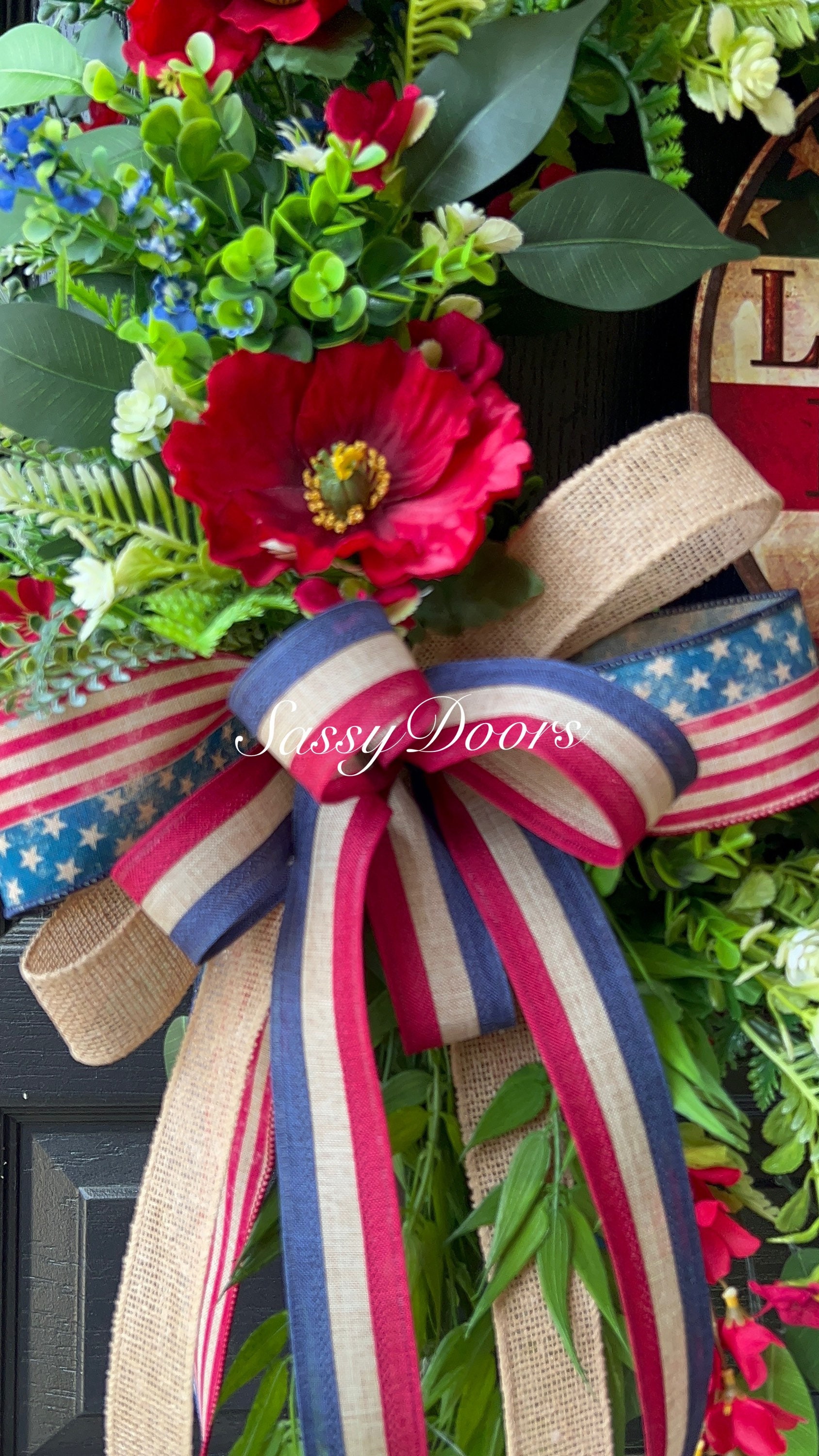 The multi patriotic ribbons and bows really add the wow effect and will make this wreath pop off your door. Sure to please your summer guest and show your American pride.