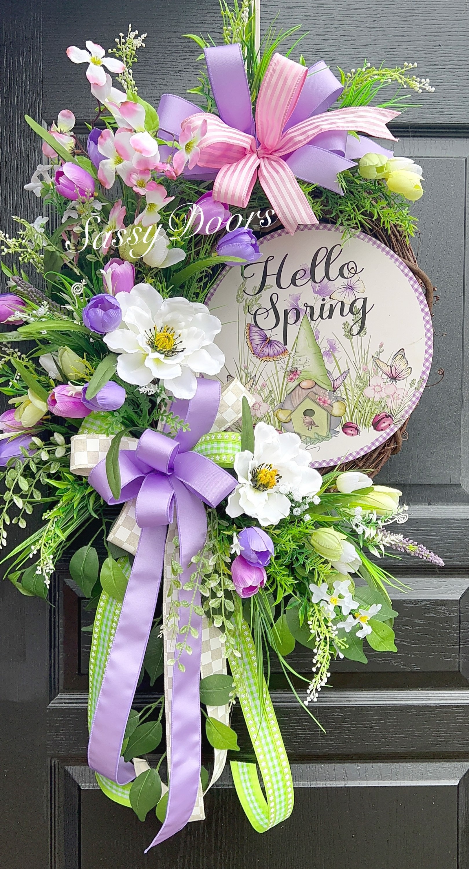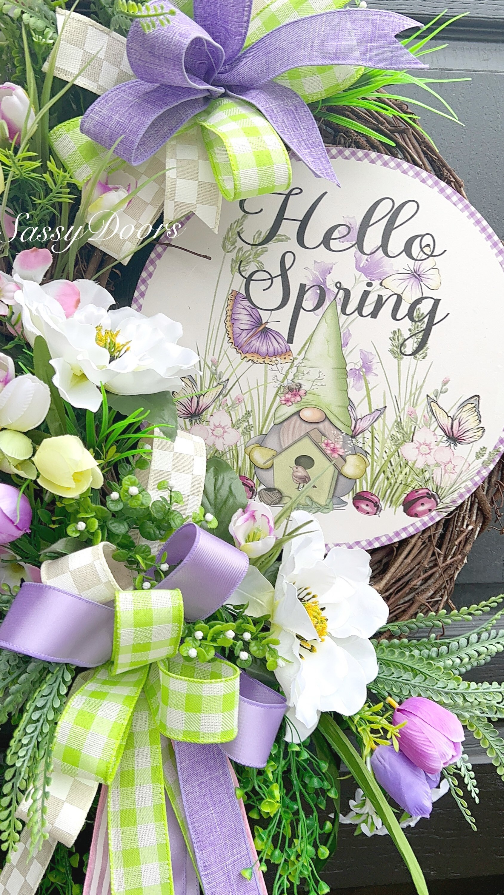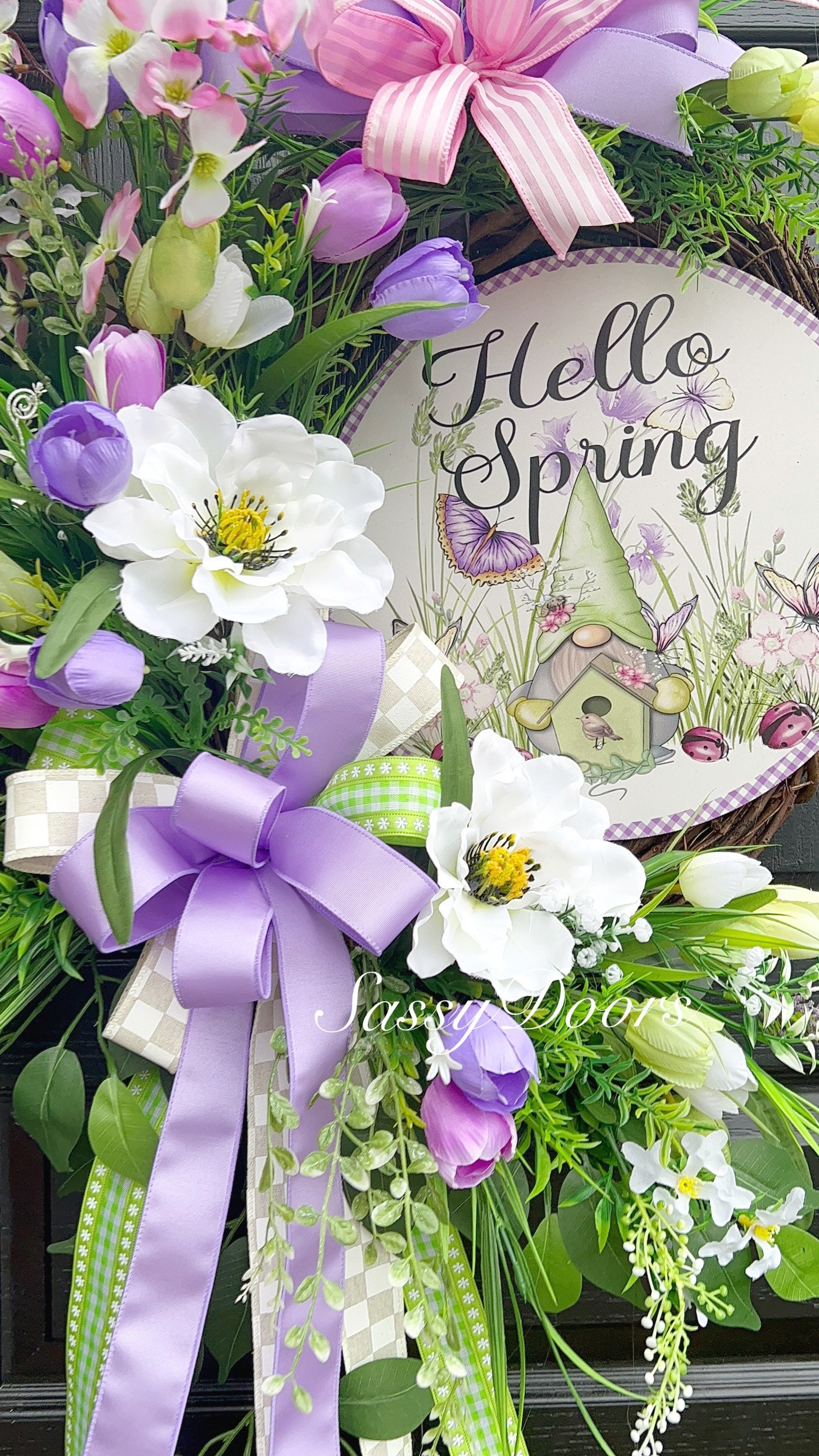 Welcome your family and friends with this stunning and colorful spring gnome tulip Wreath for your Front Door!