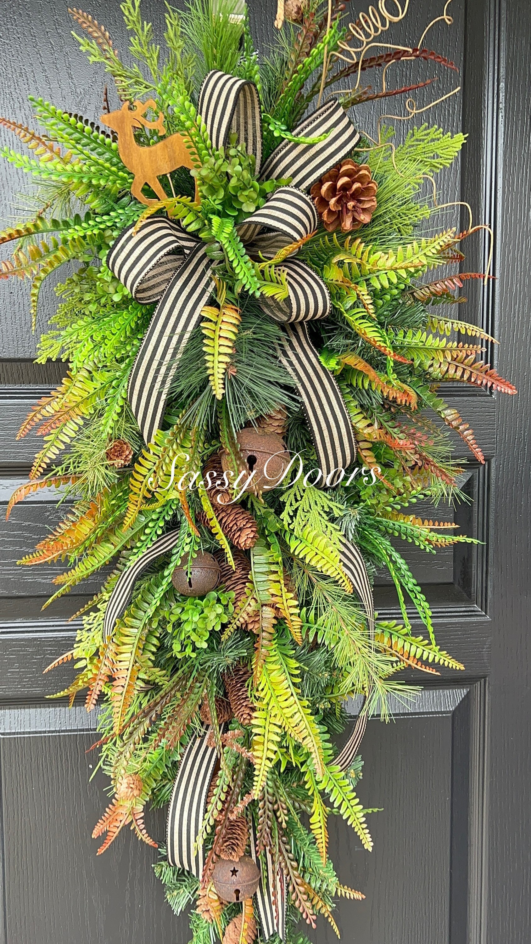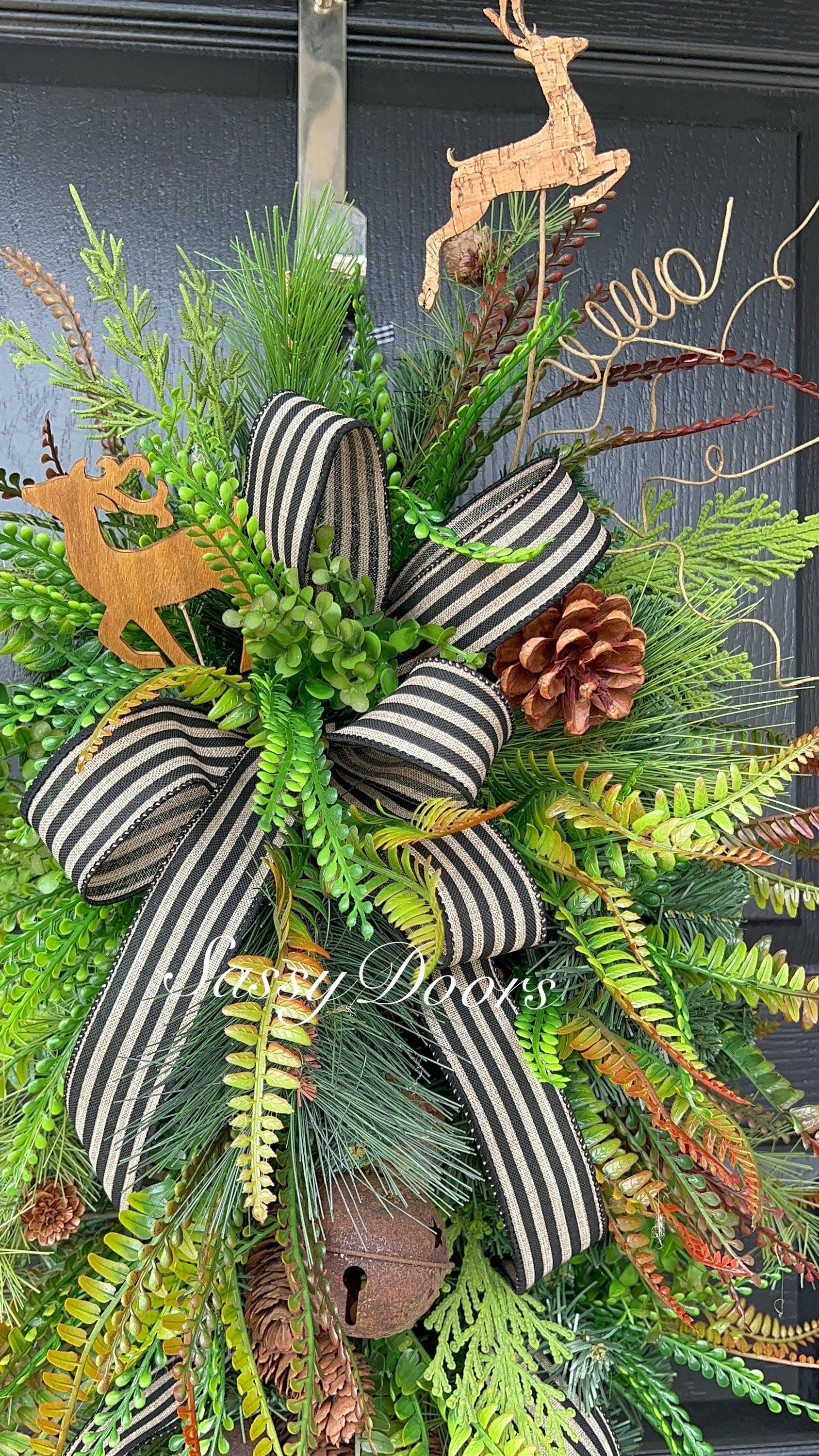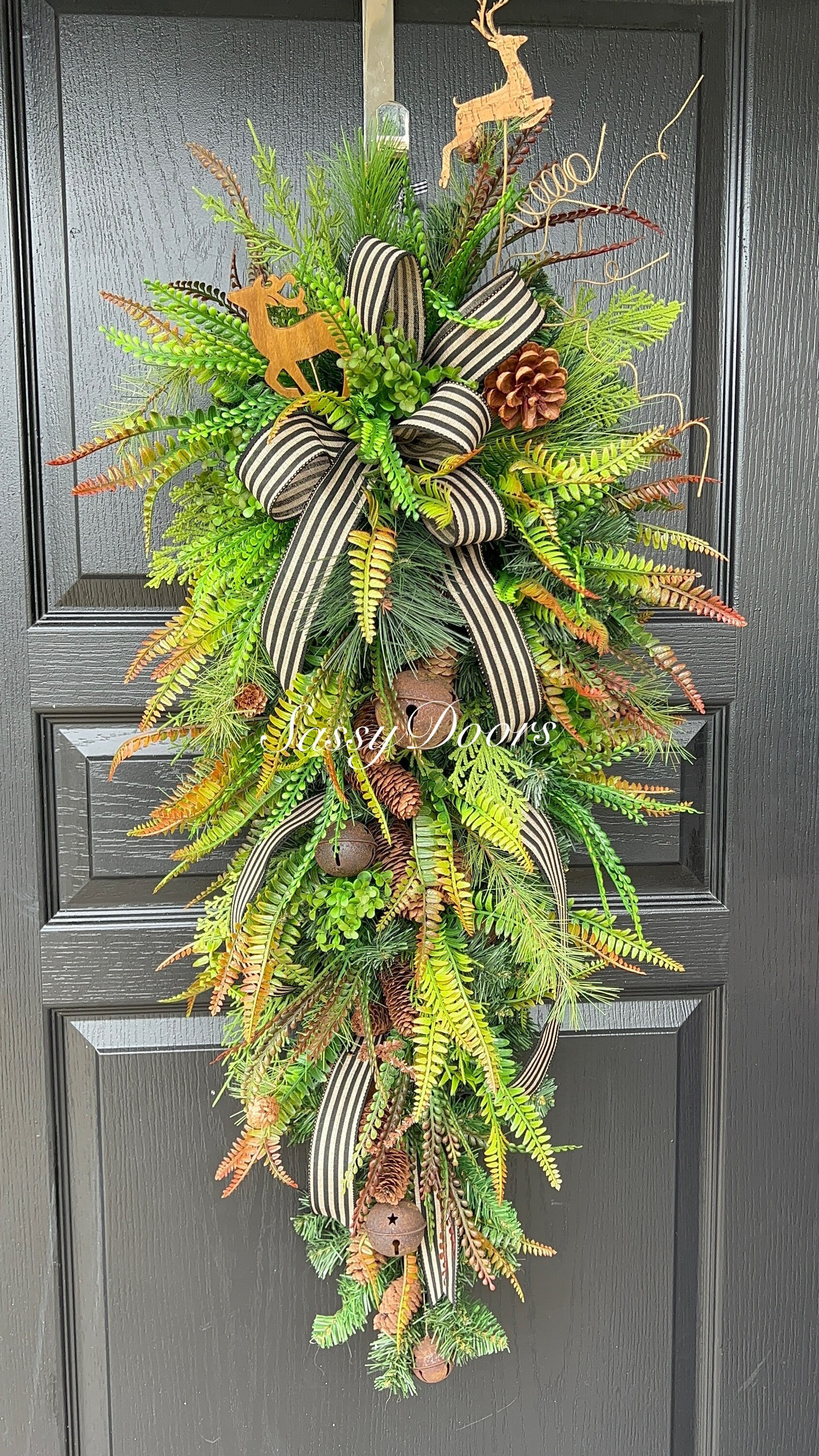 Delight your Woodland winter door with this amazing woodland deer swag.