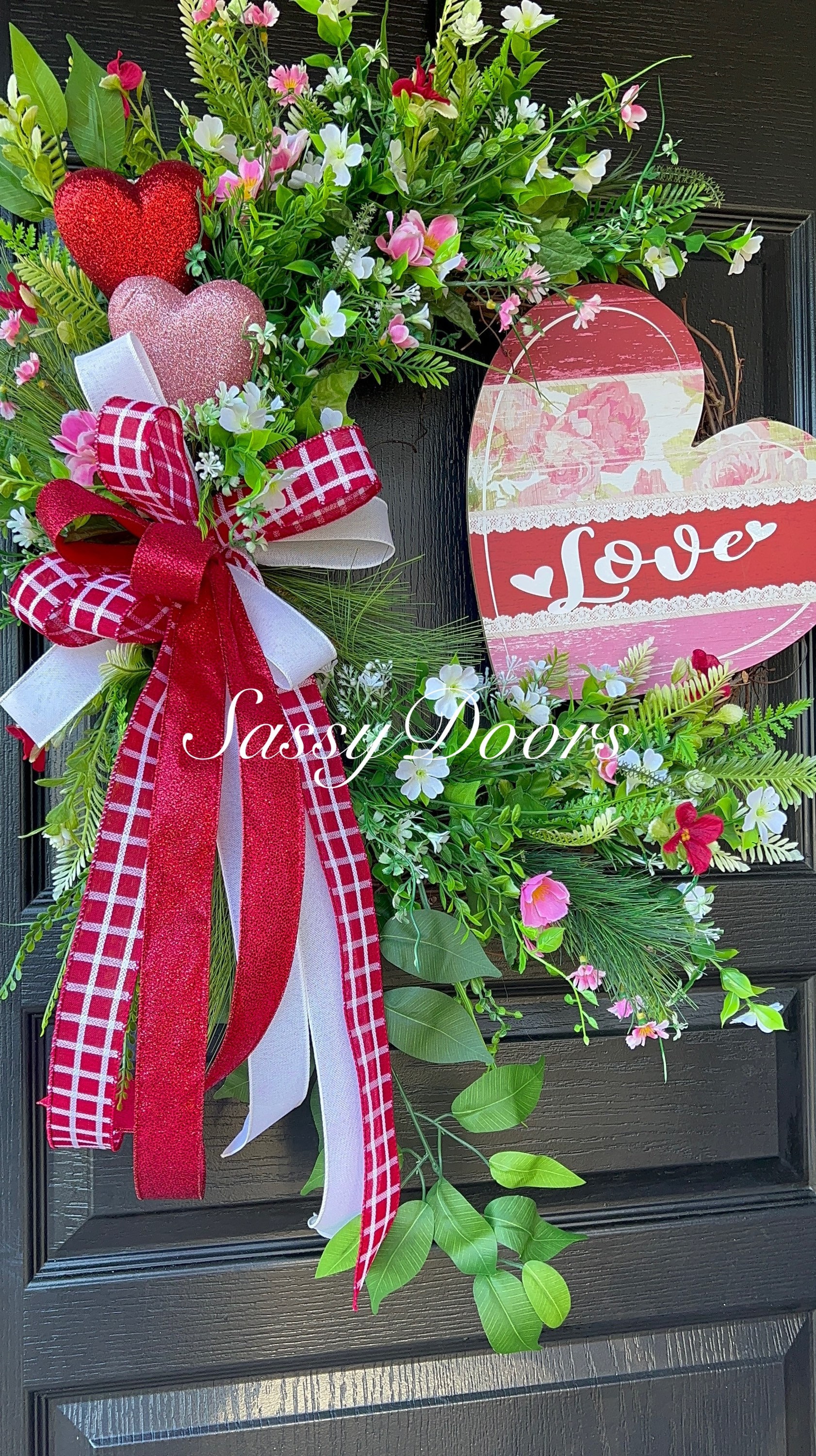 Wow you door and guest with this lovely Valentine Wreath. This valentine door wreath will bring a smile to you and your guest.