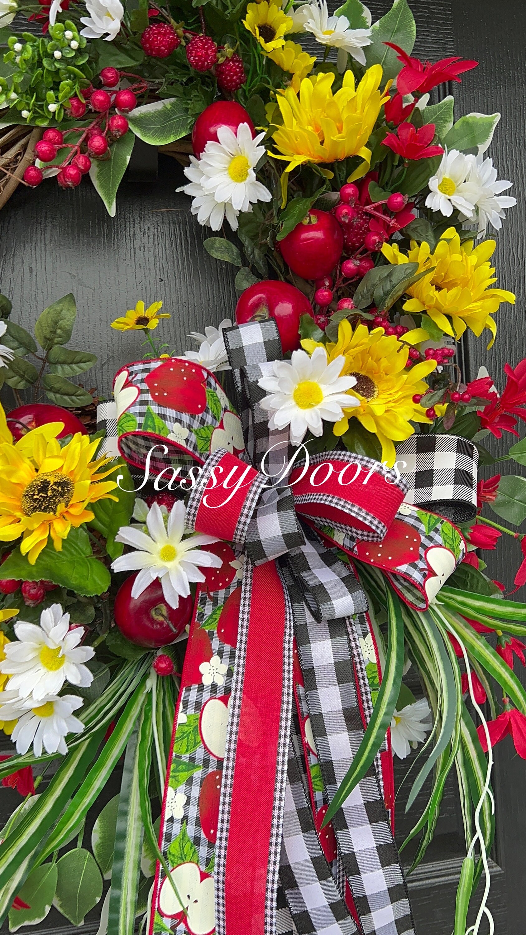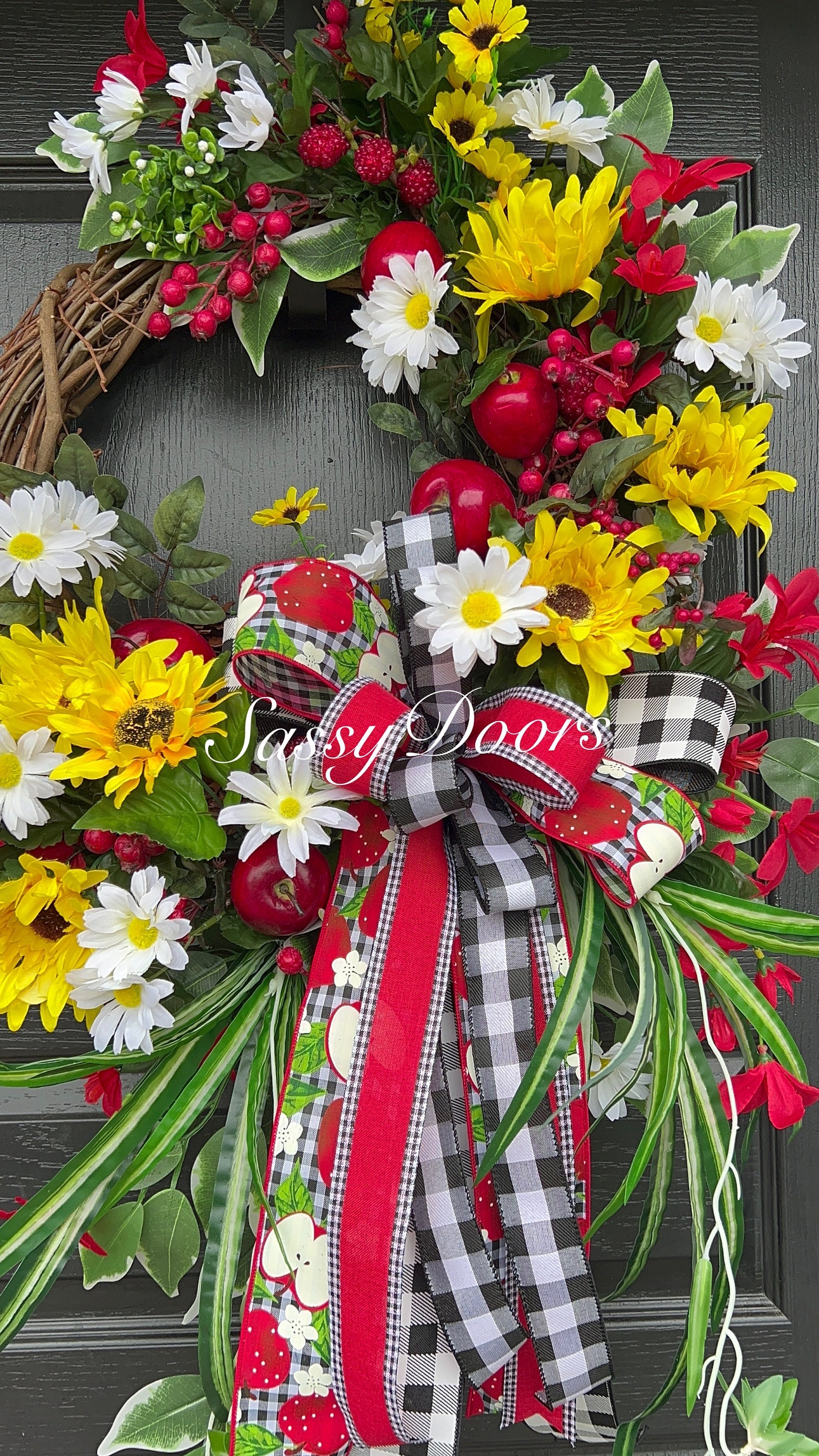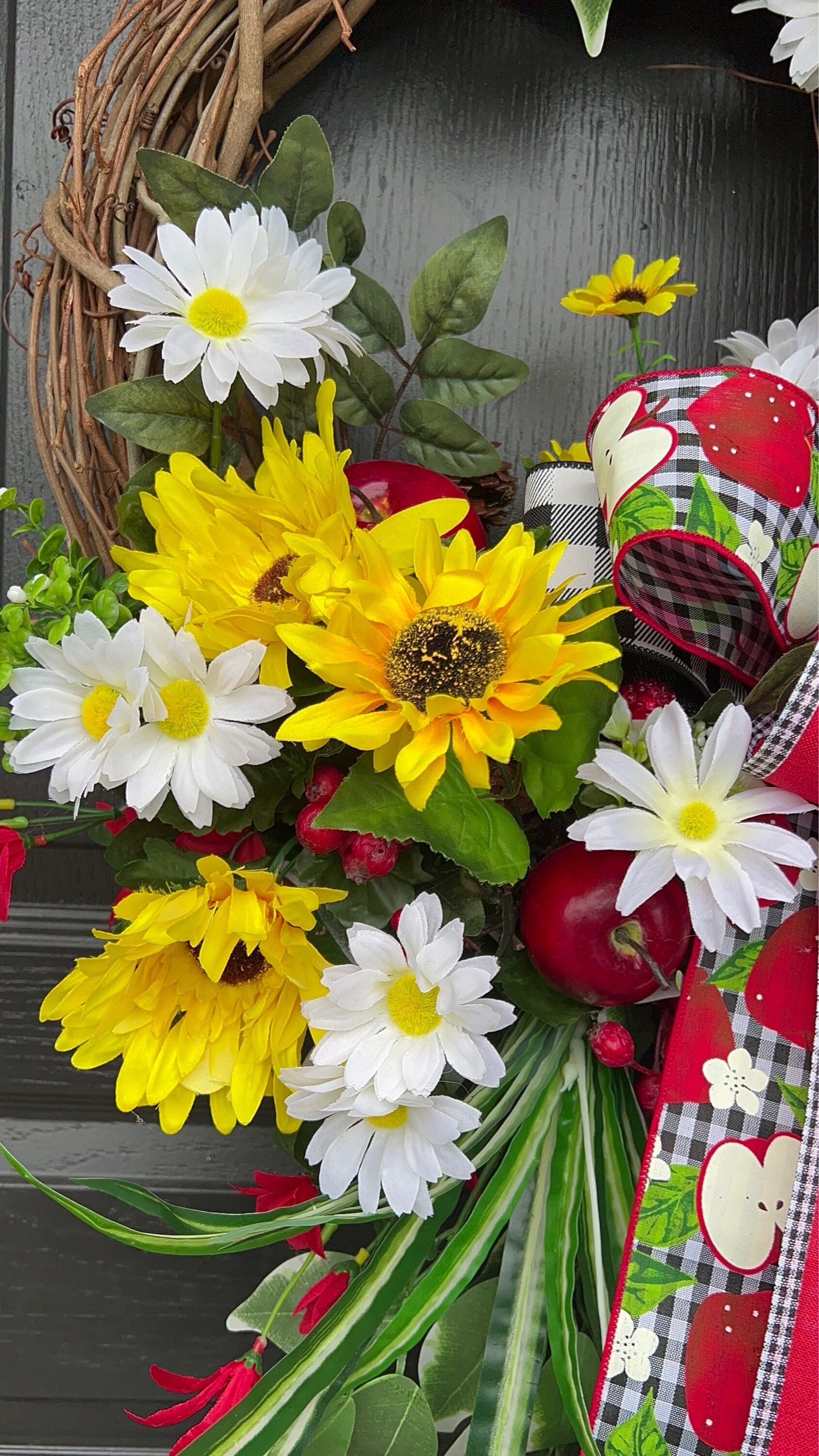 This bountiful summer apple wreath is sure to be a stop and go “Wow” and garner many compliments!