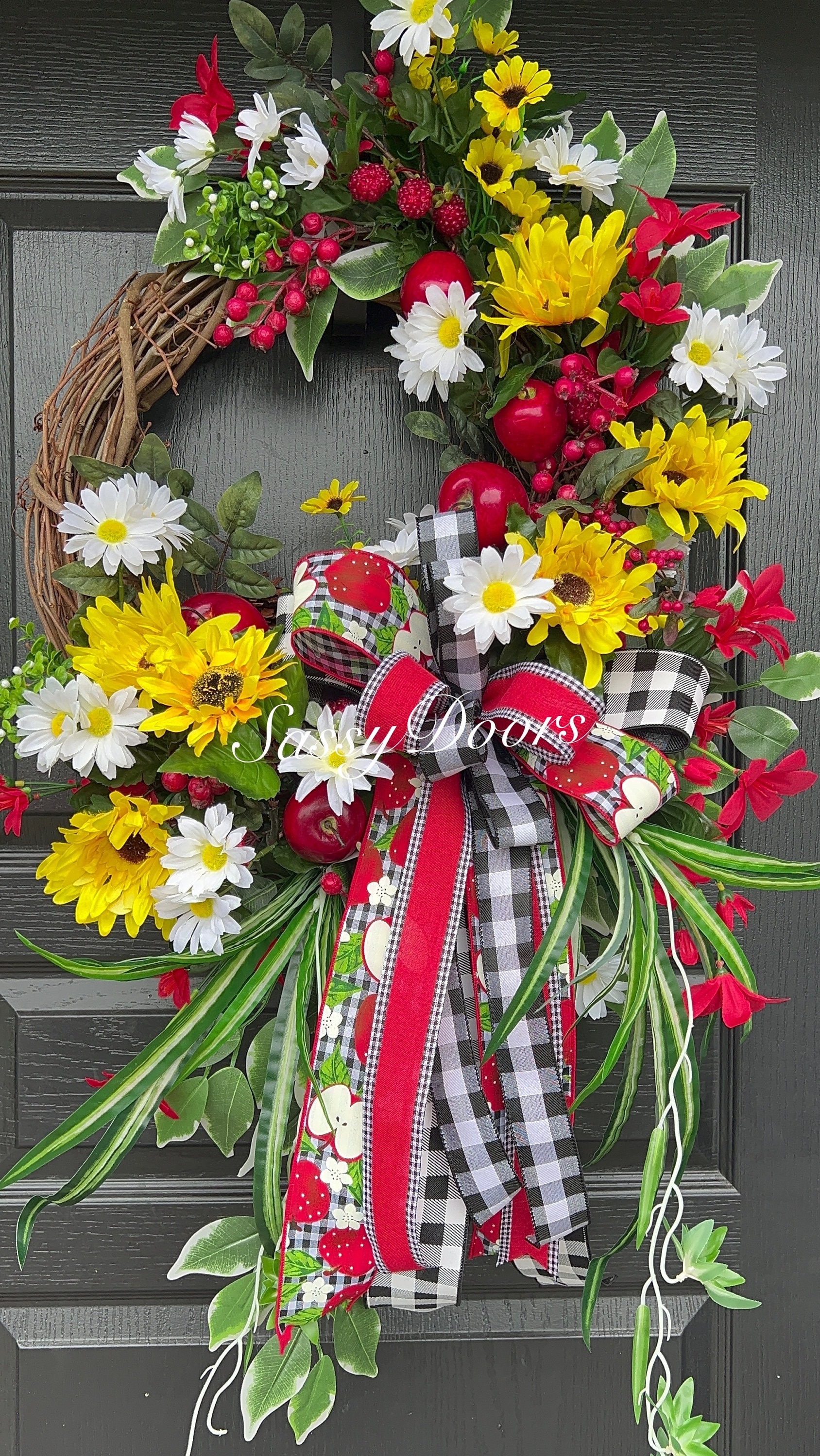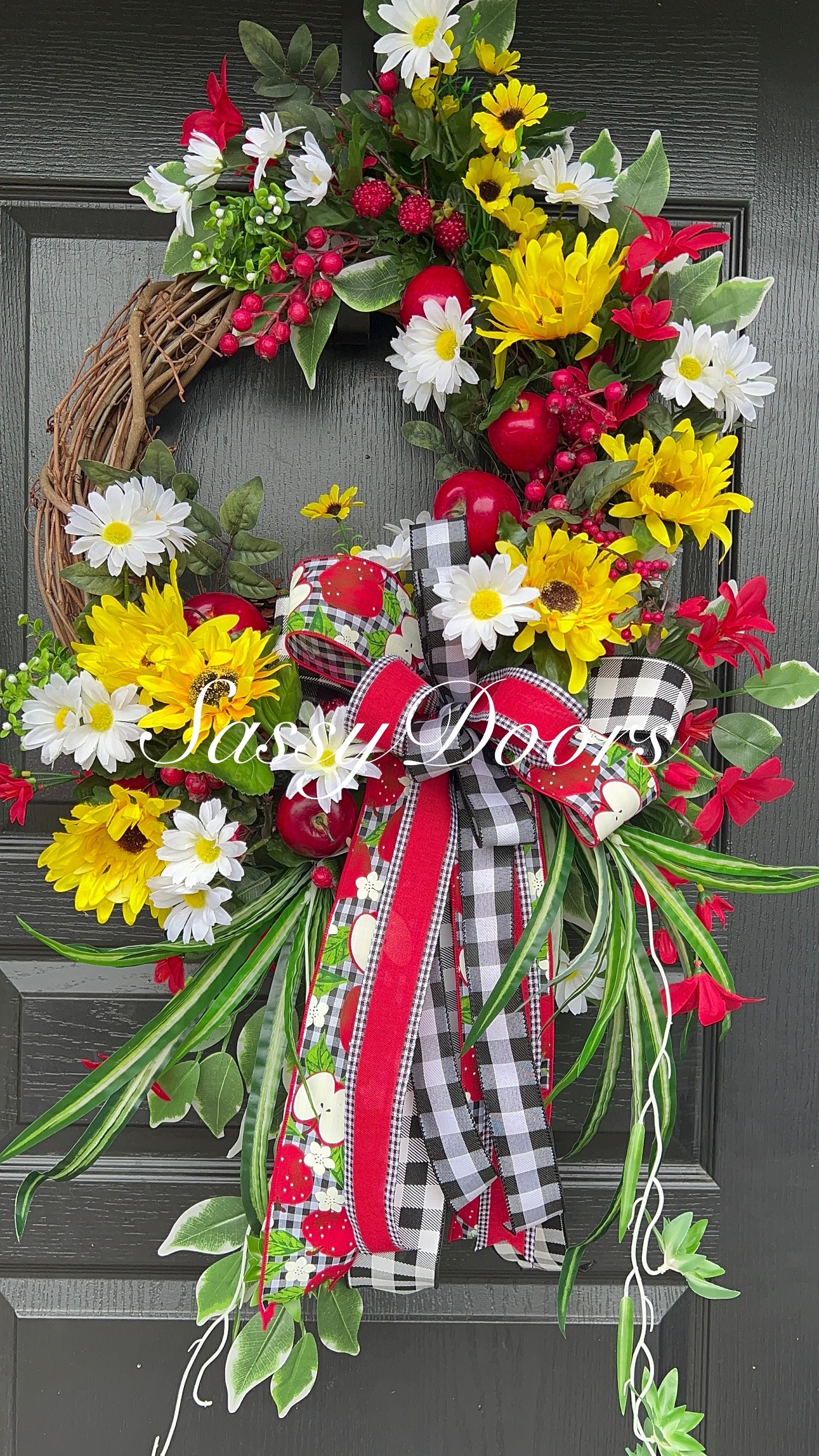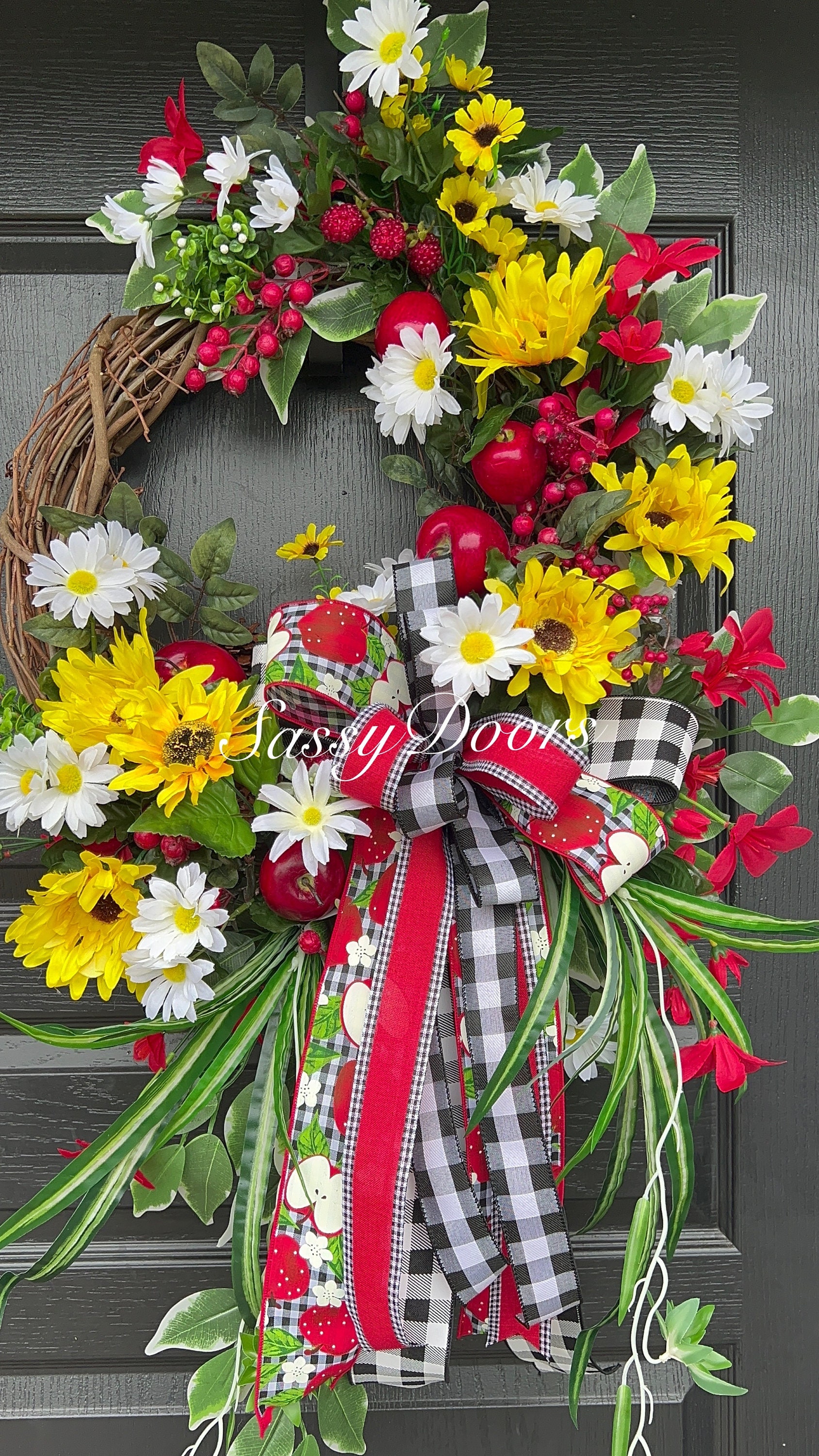 This bountiful summer apple wreath is sure to be a stop and go “Wow” and garner many compliments!