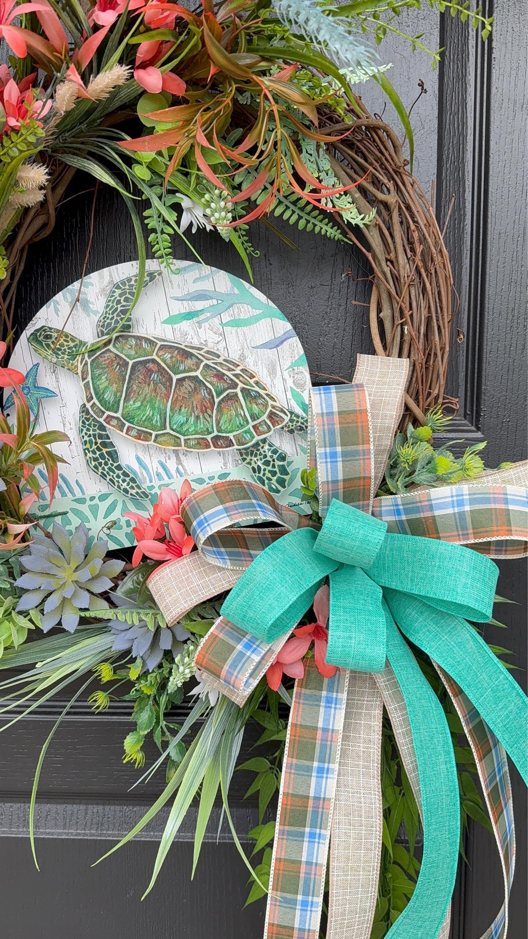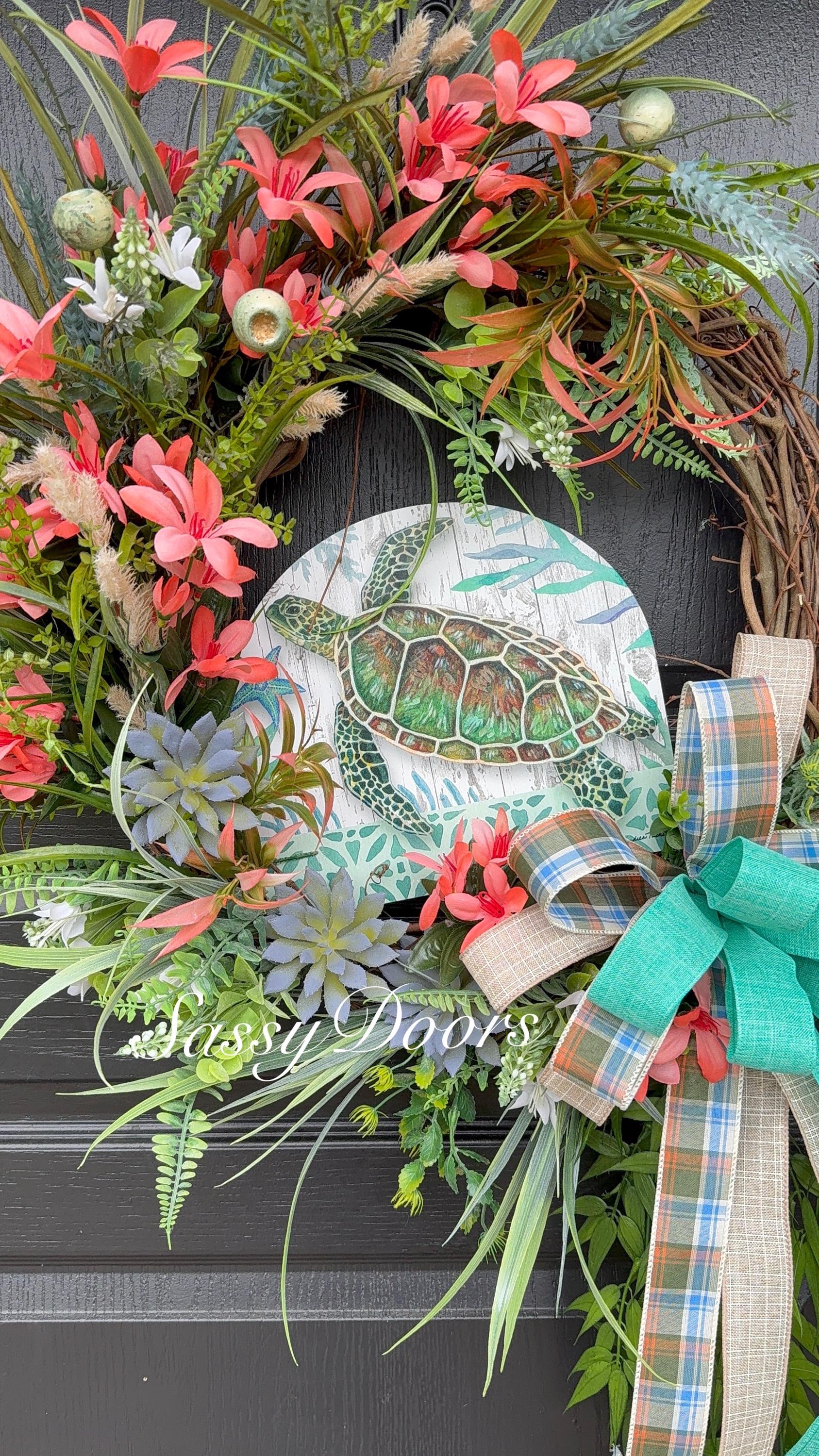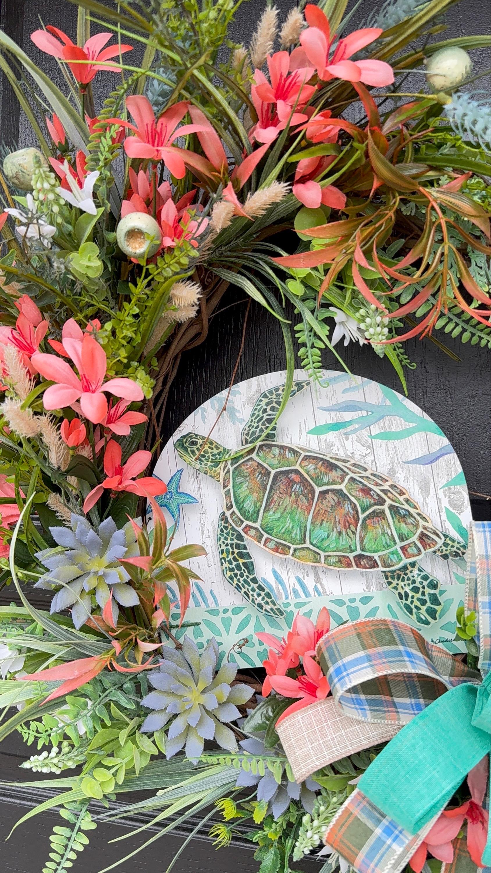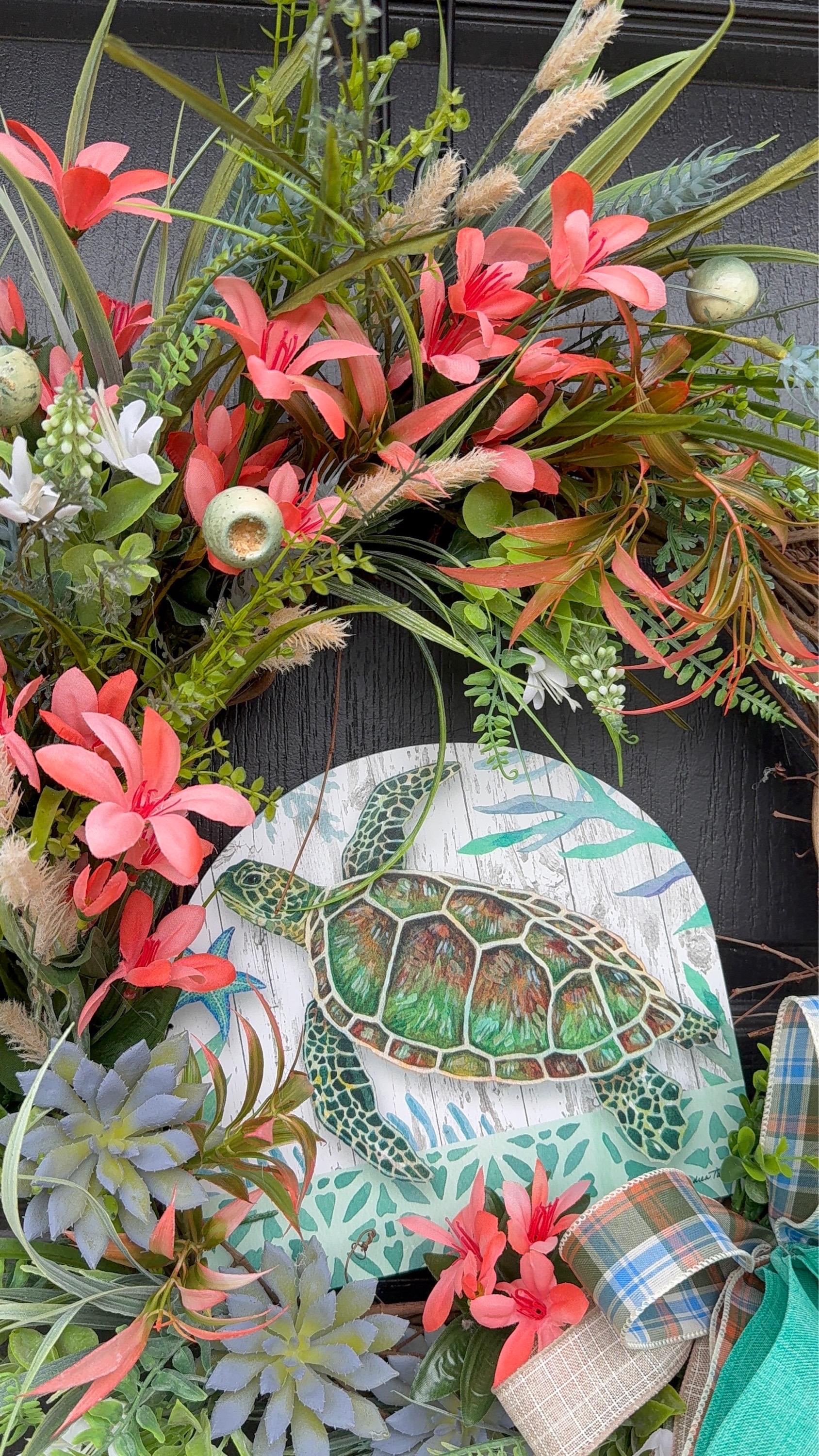 This lovely sea turtle coastal wreath is stunning and ready to hang on your door or inside your home to add the perfect touch to your nautical decor.