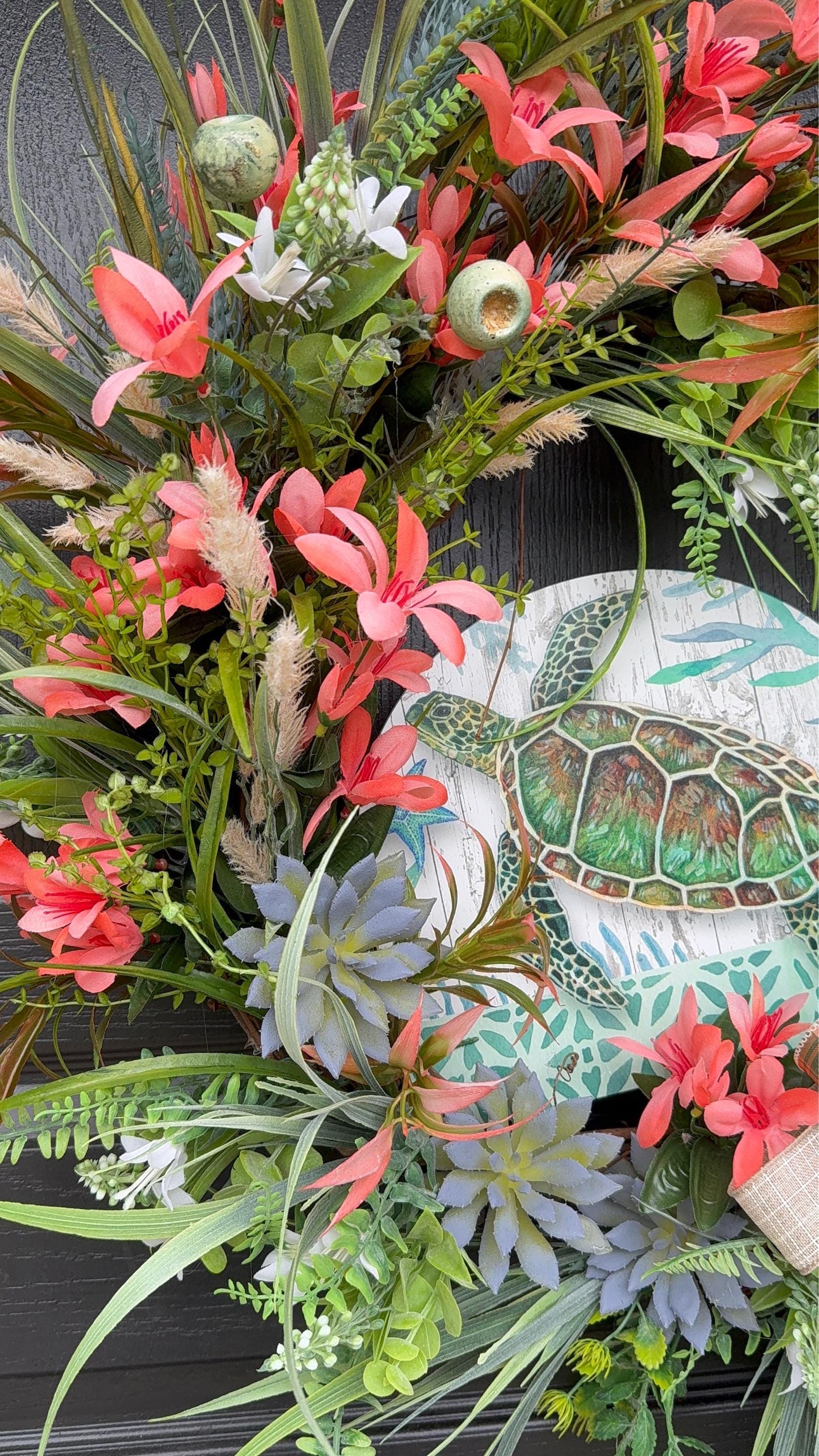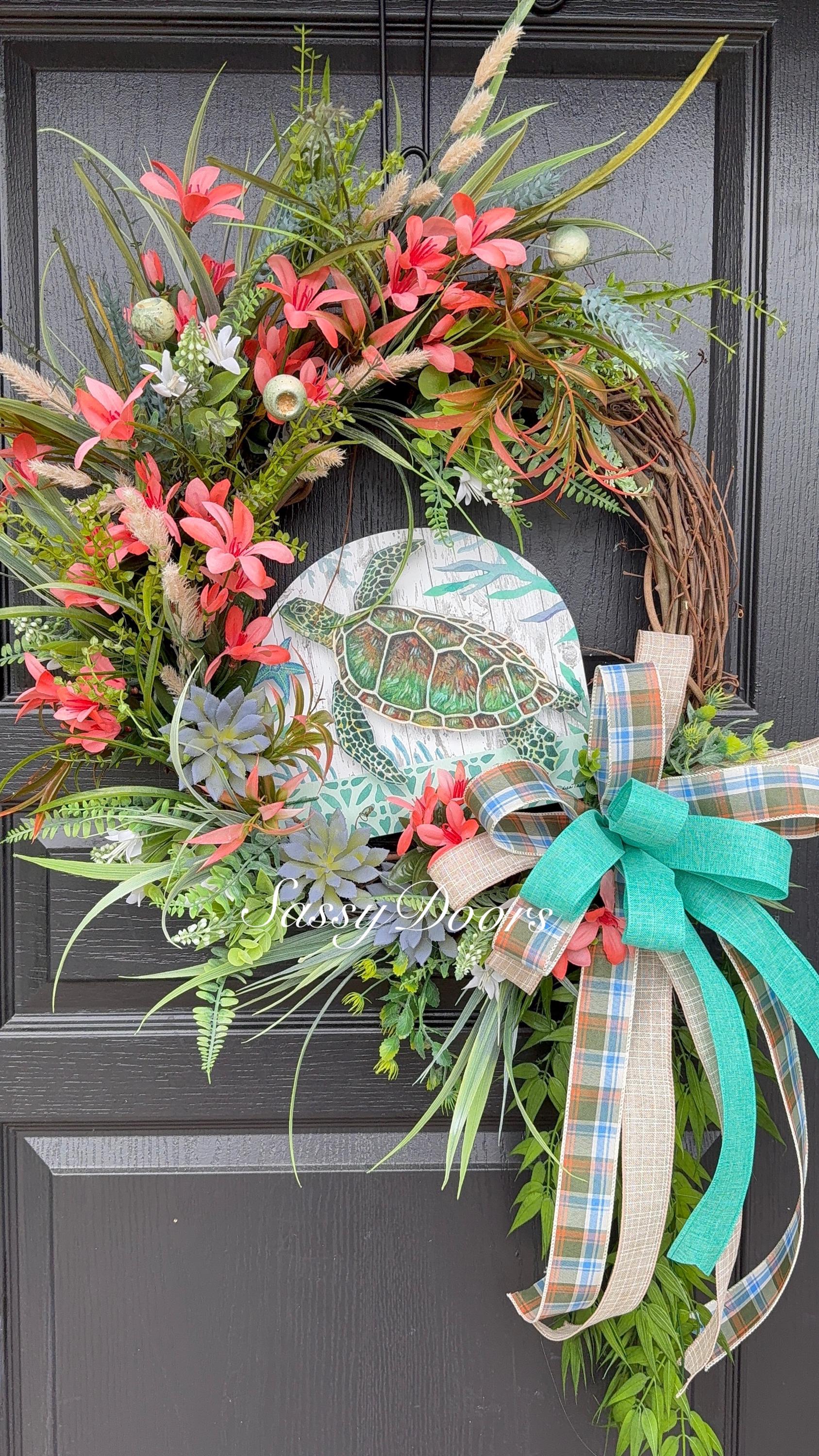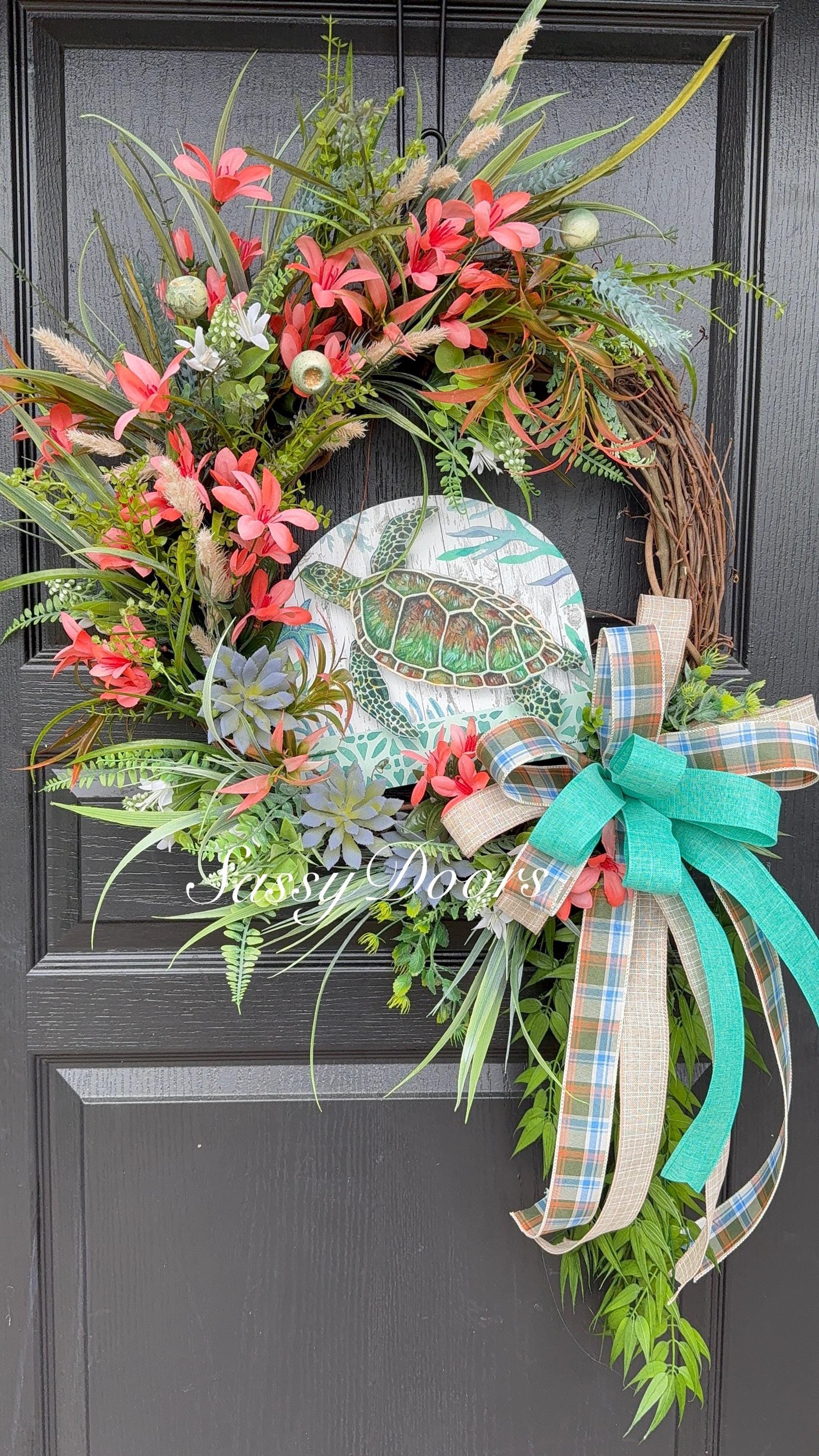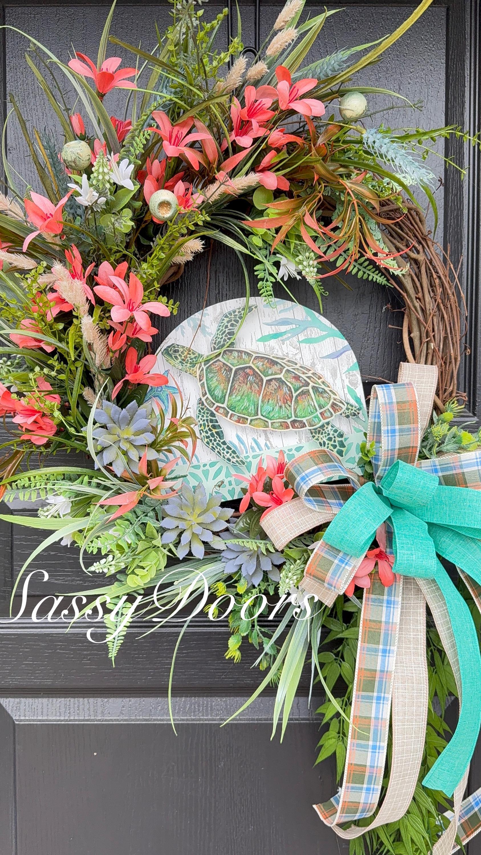 This lovely sea turtle coastal wreath is stunning and ready to hang on your door or inside your home to add the perfect touch to your nautical decor.