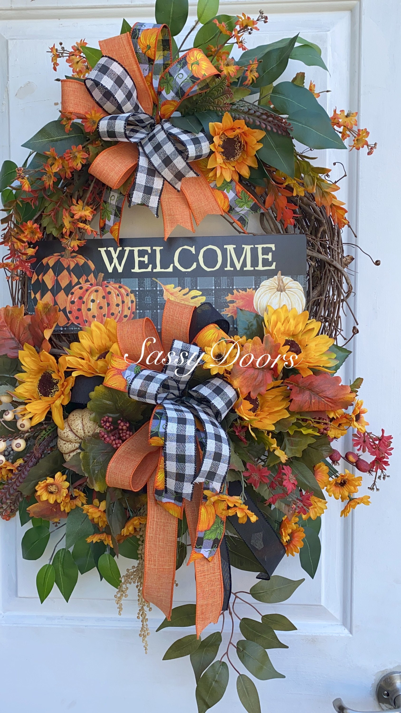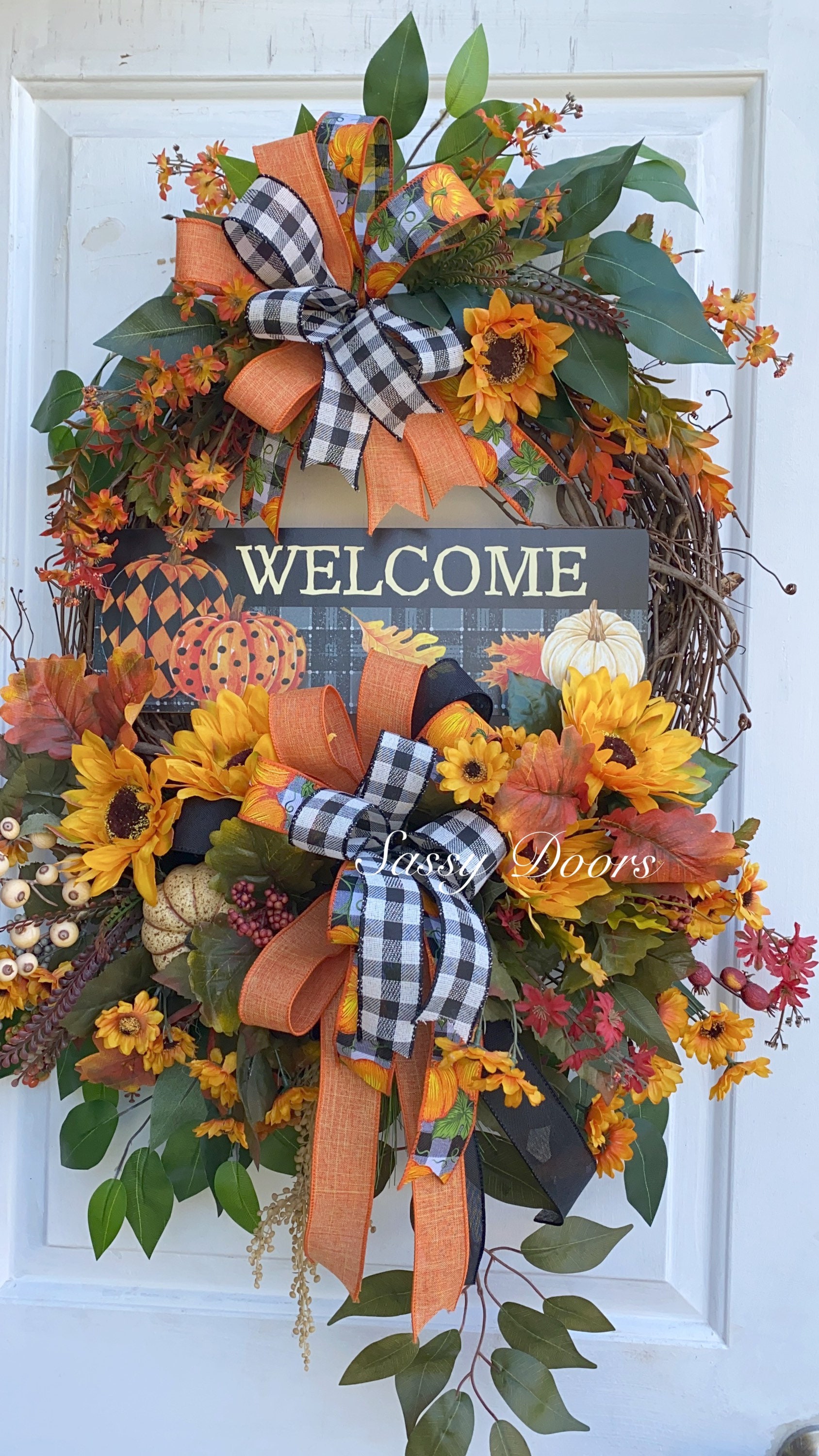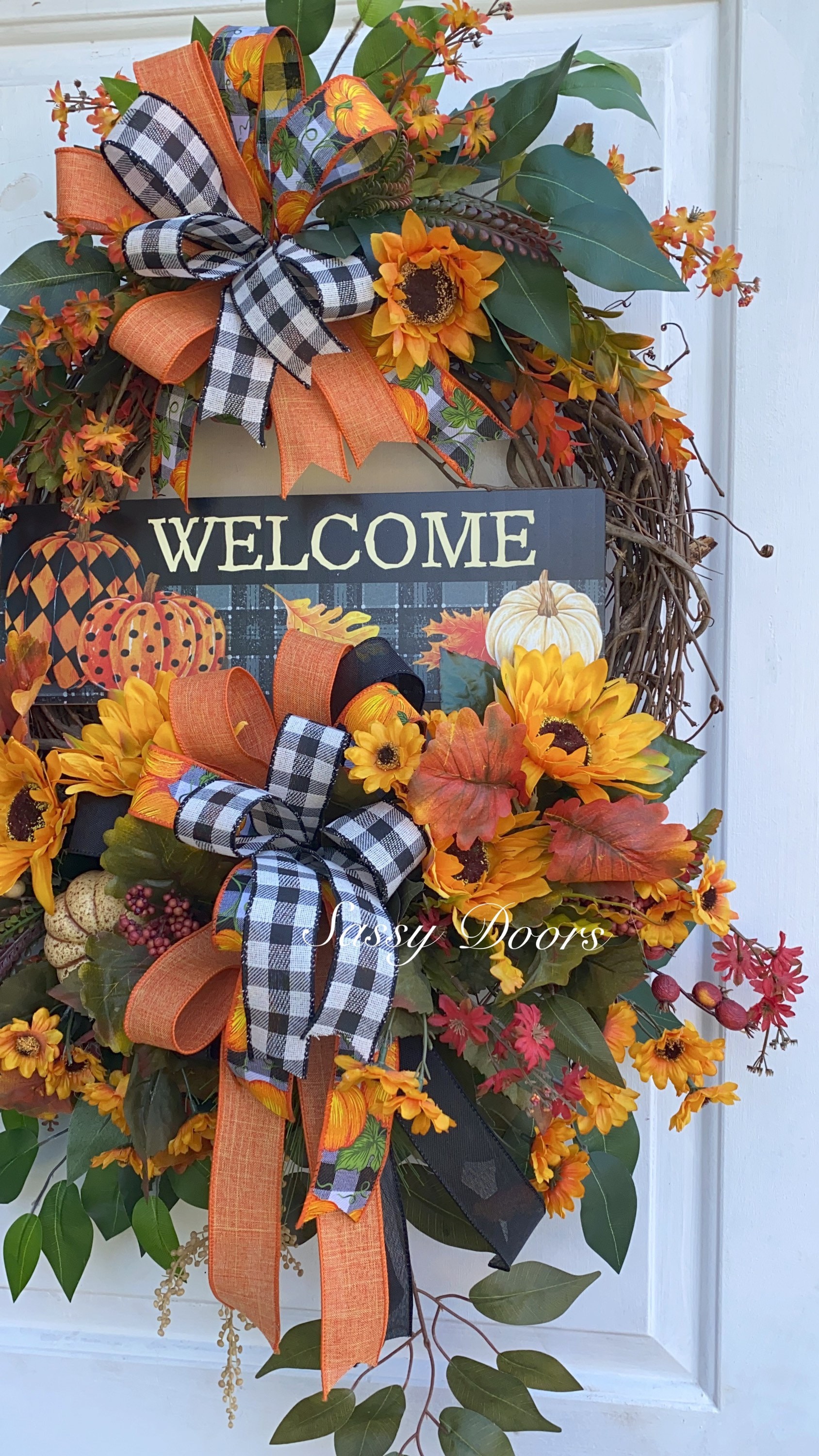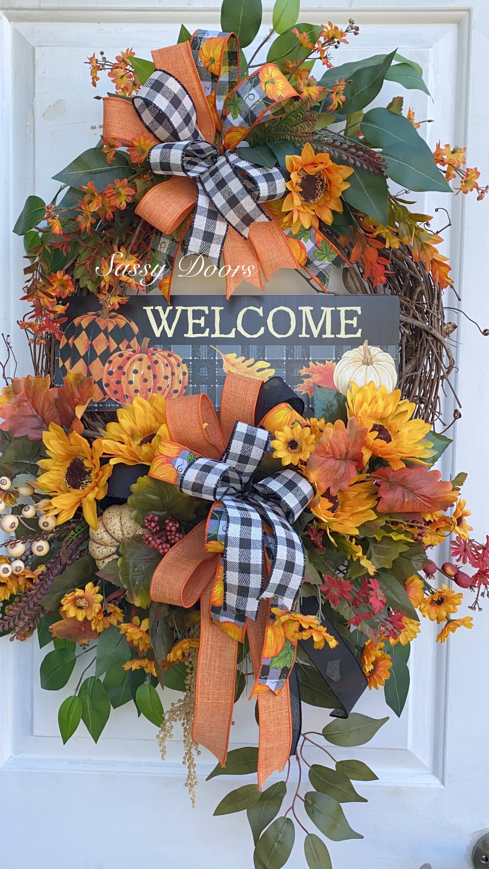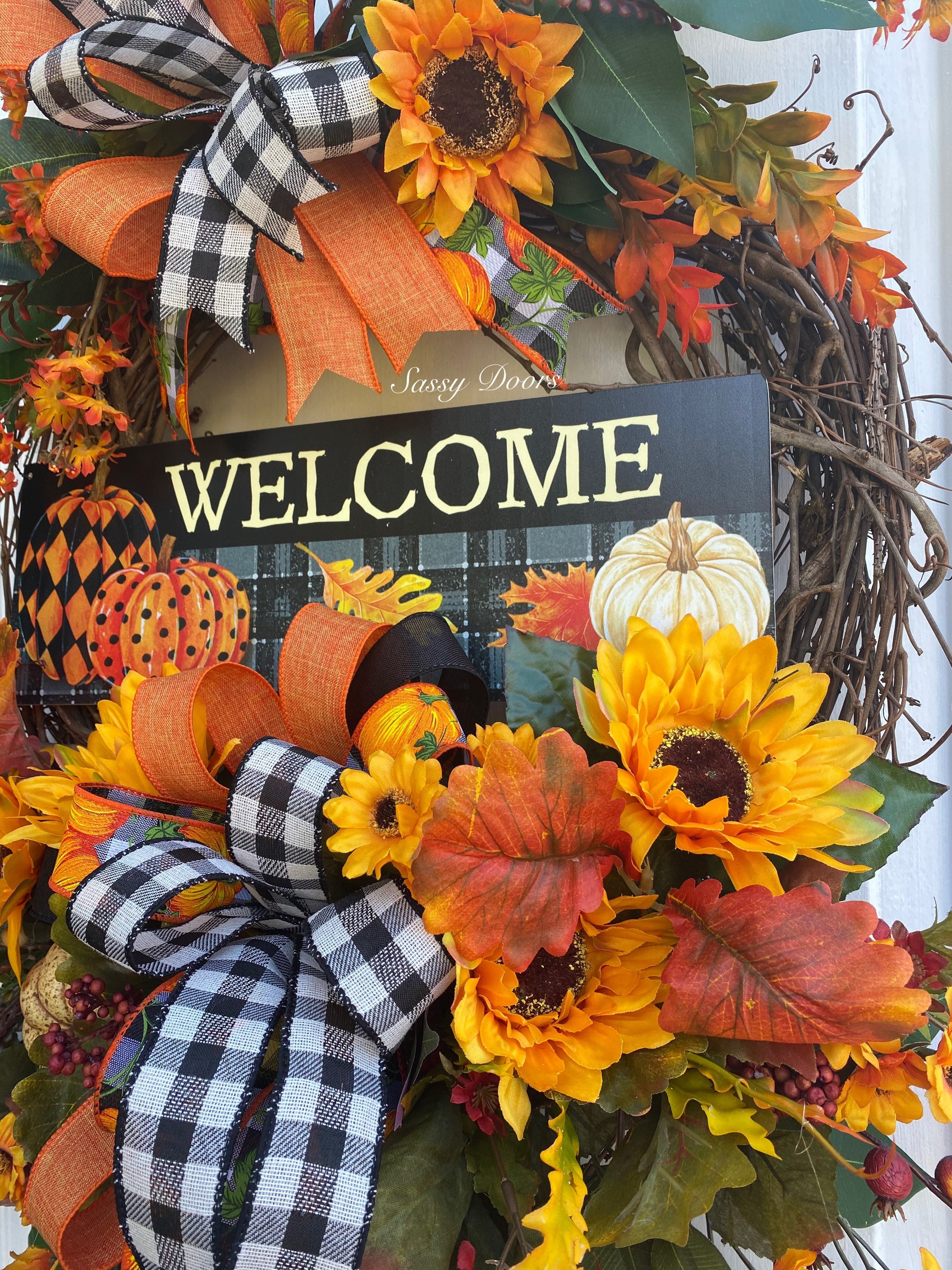 Accented with lovely fall sunflowers greenery and so much more. The magnificent array makes this a stunning fall door wreath.