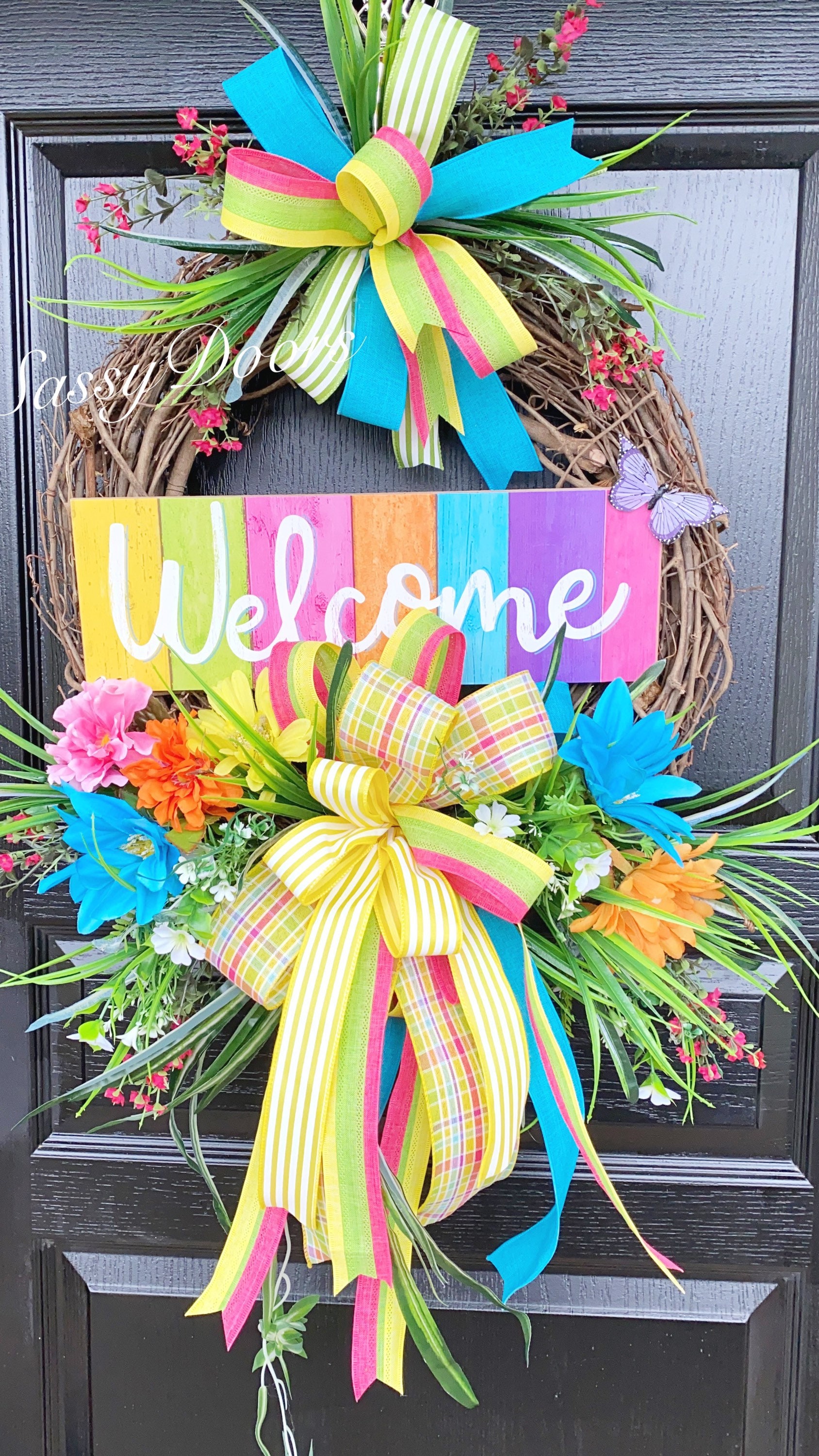 Adorned with multi bows and ribbons gives this beautiful wreath it’s wow effect !