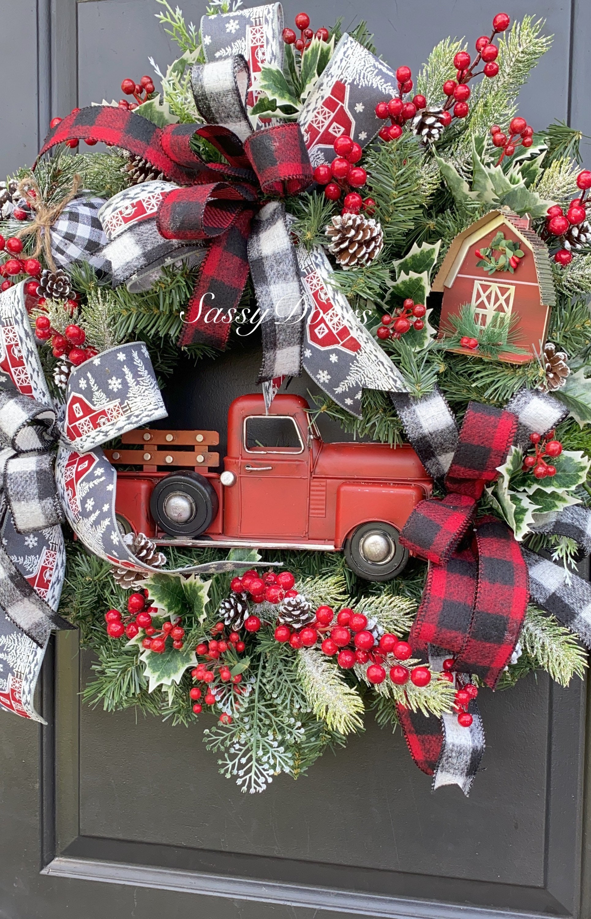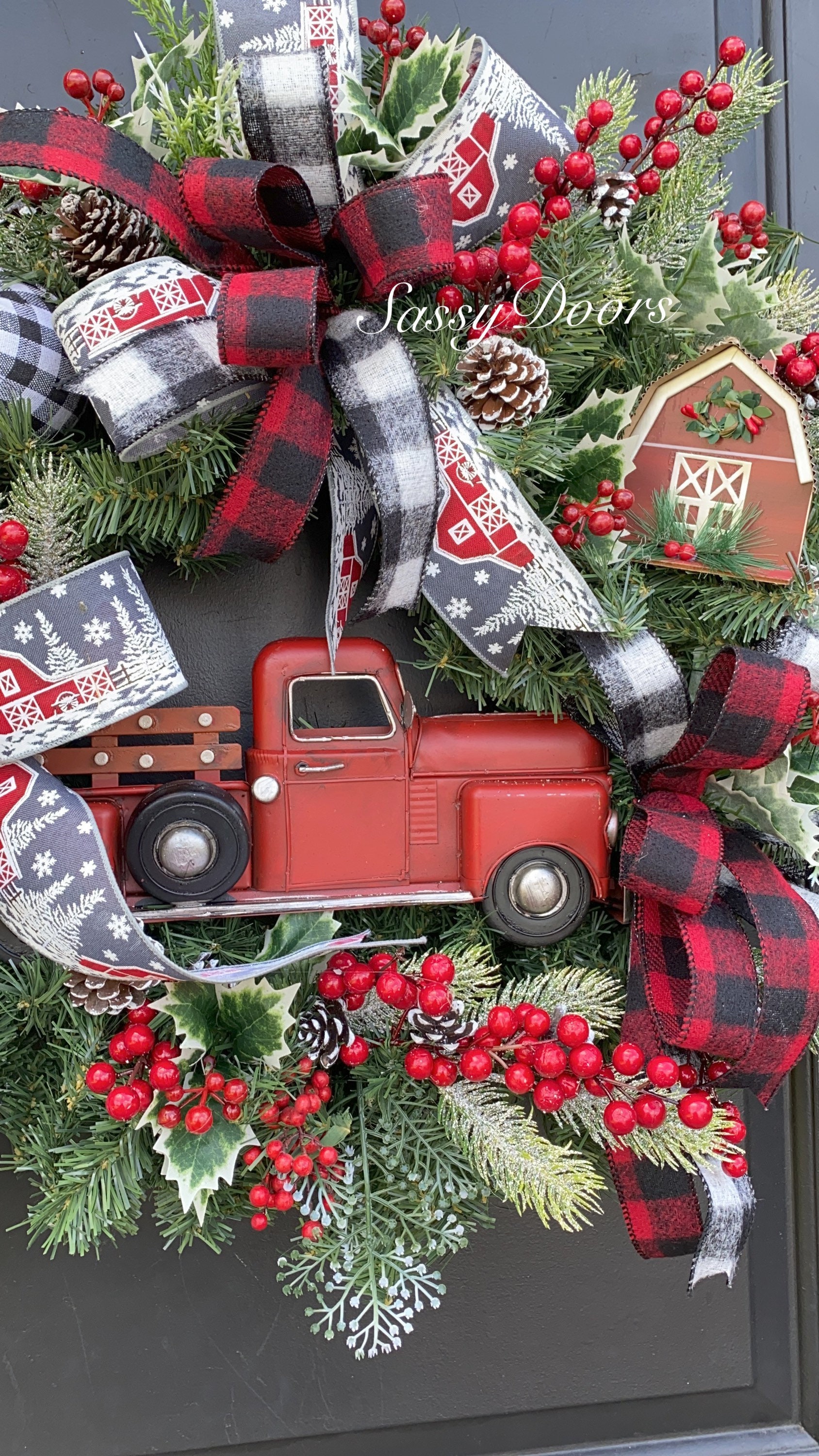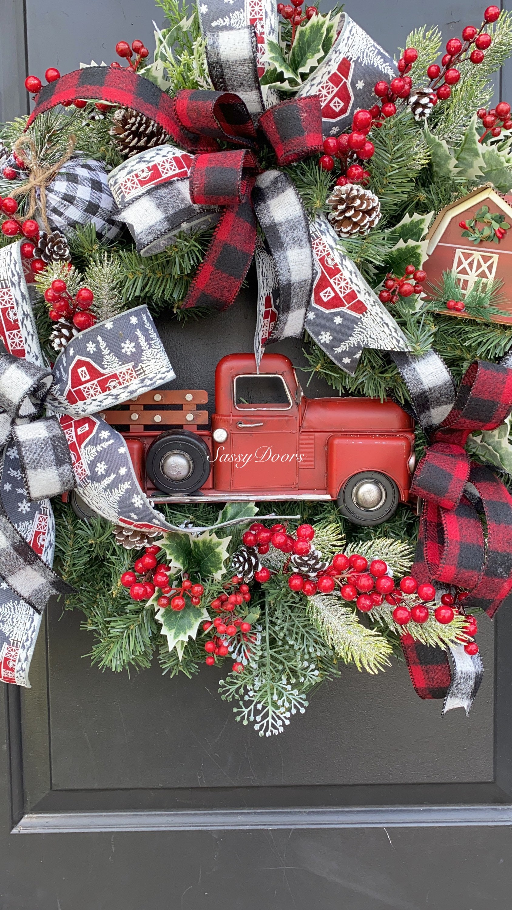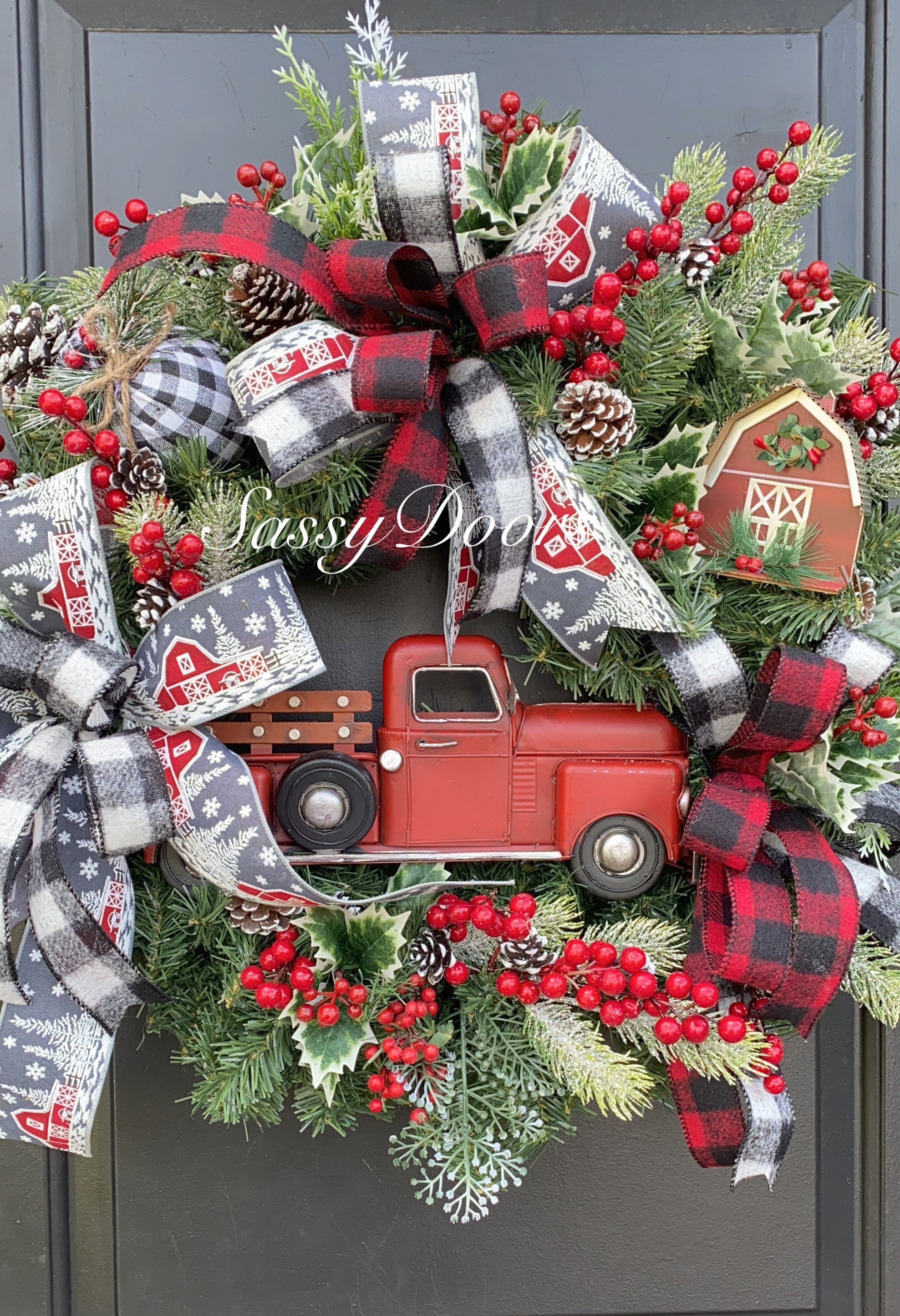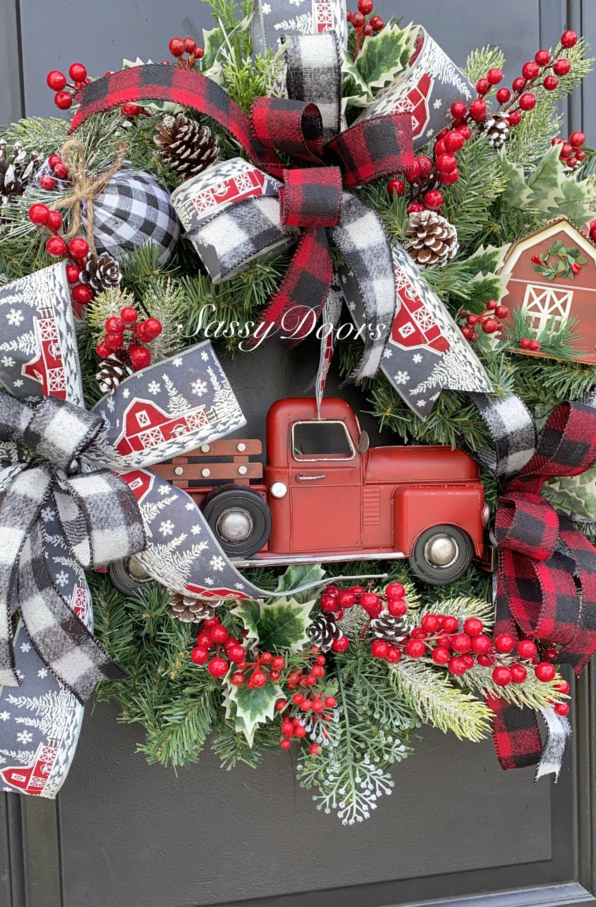Red Truck Wreath, Buffalo Plaid Christmas Wreath, Rustic Christmas Wreath, Red Truck Christmas Wreath, Christmas Wreath For Front Door, Rustic Wreath, Christmas Decor, Home and Living, Christmas Decor, Christmas Door, Traditional Christmas, SassyDoorWreath