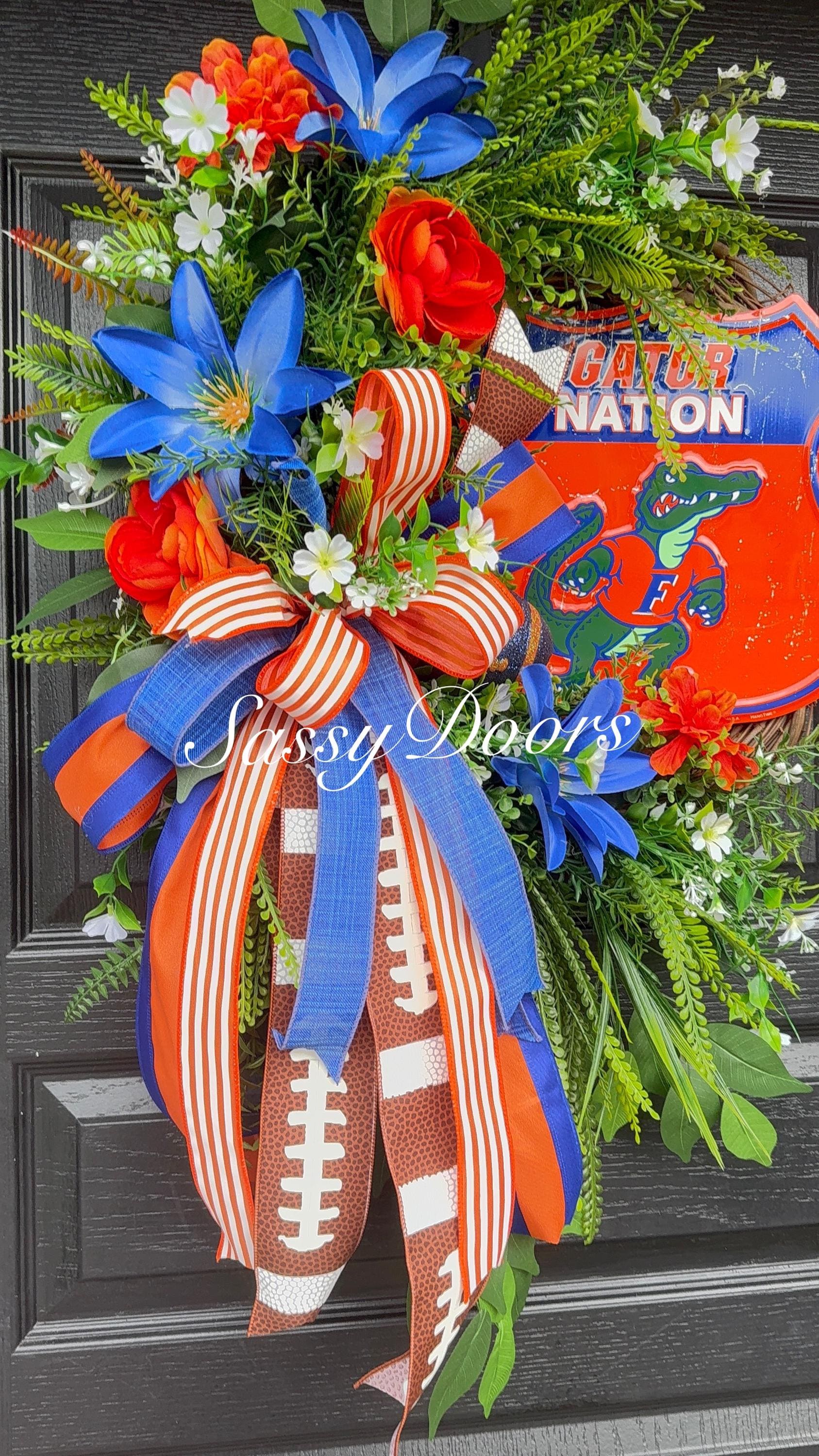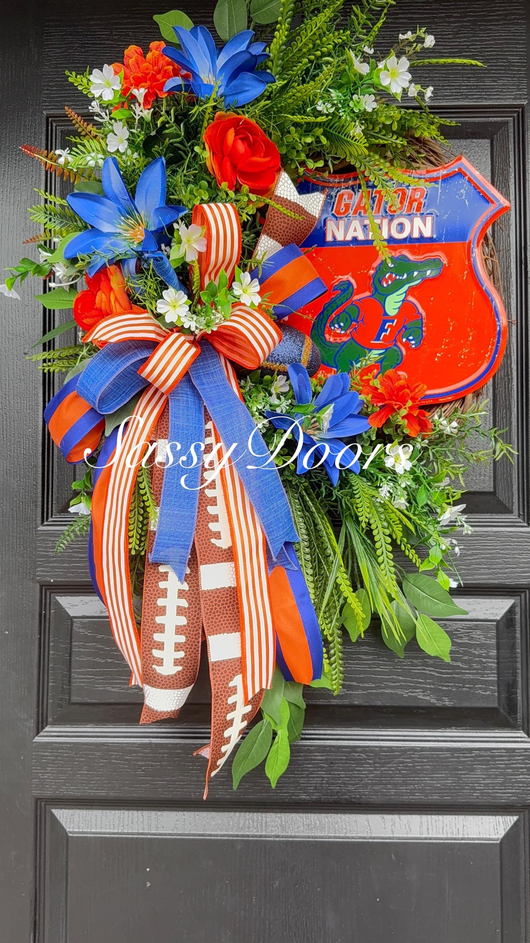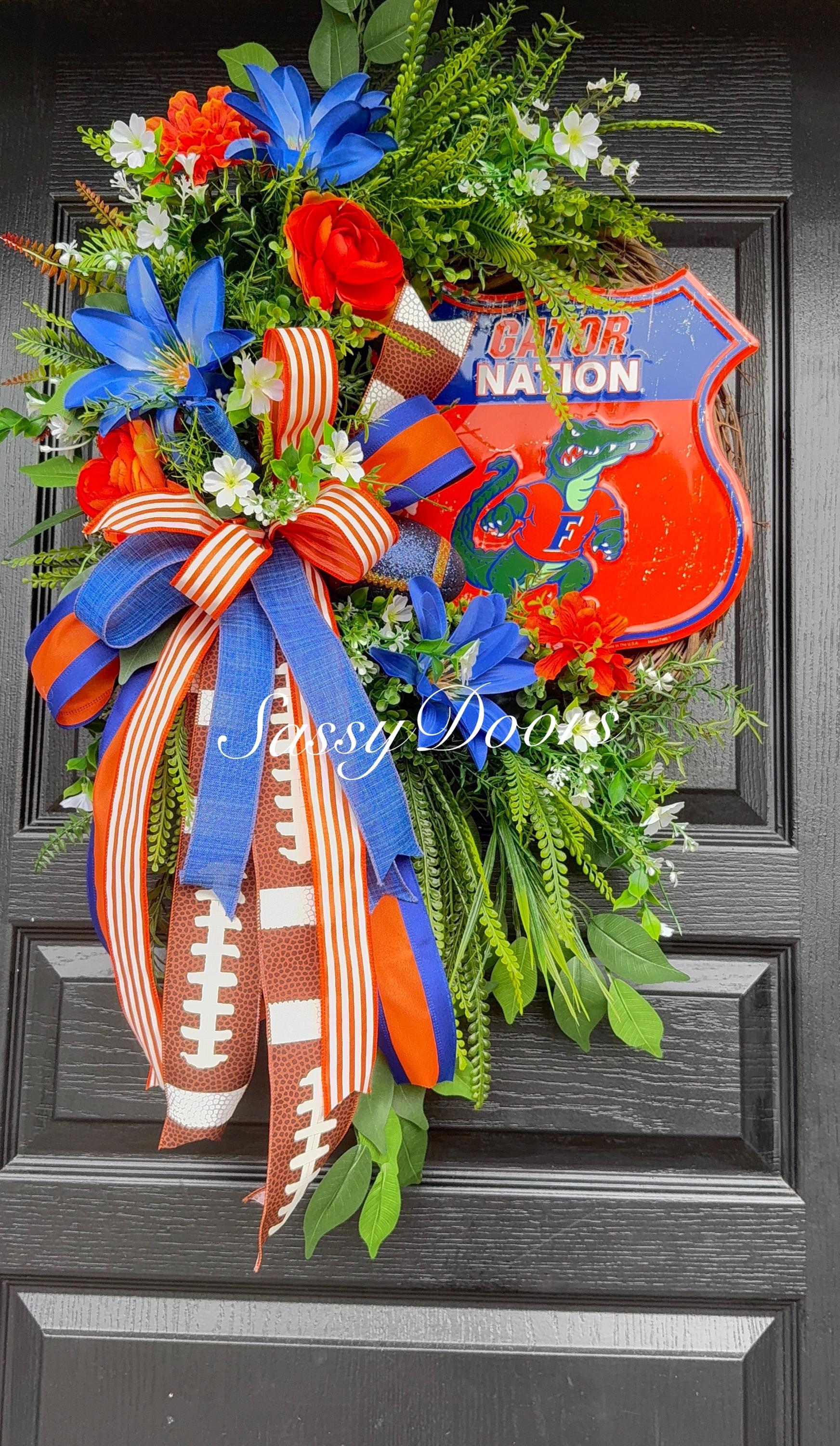 Show your school pride with this beautiful Florida Gators College alumni door wreath.