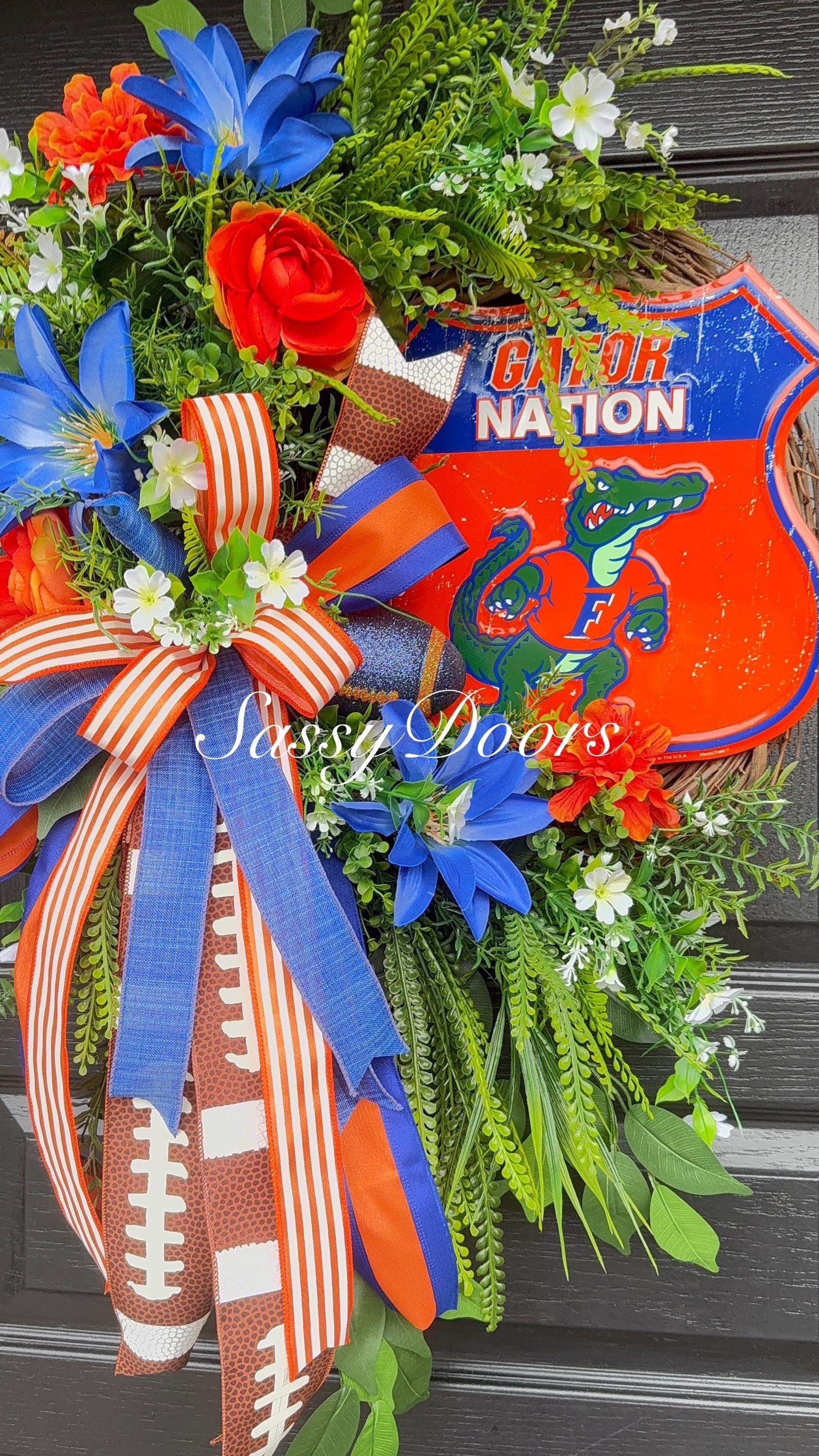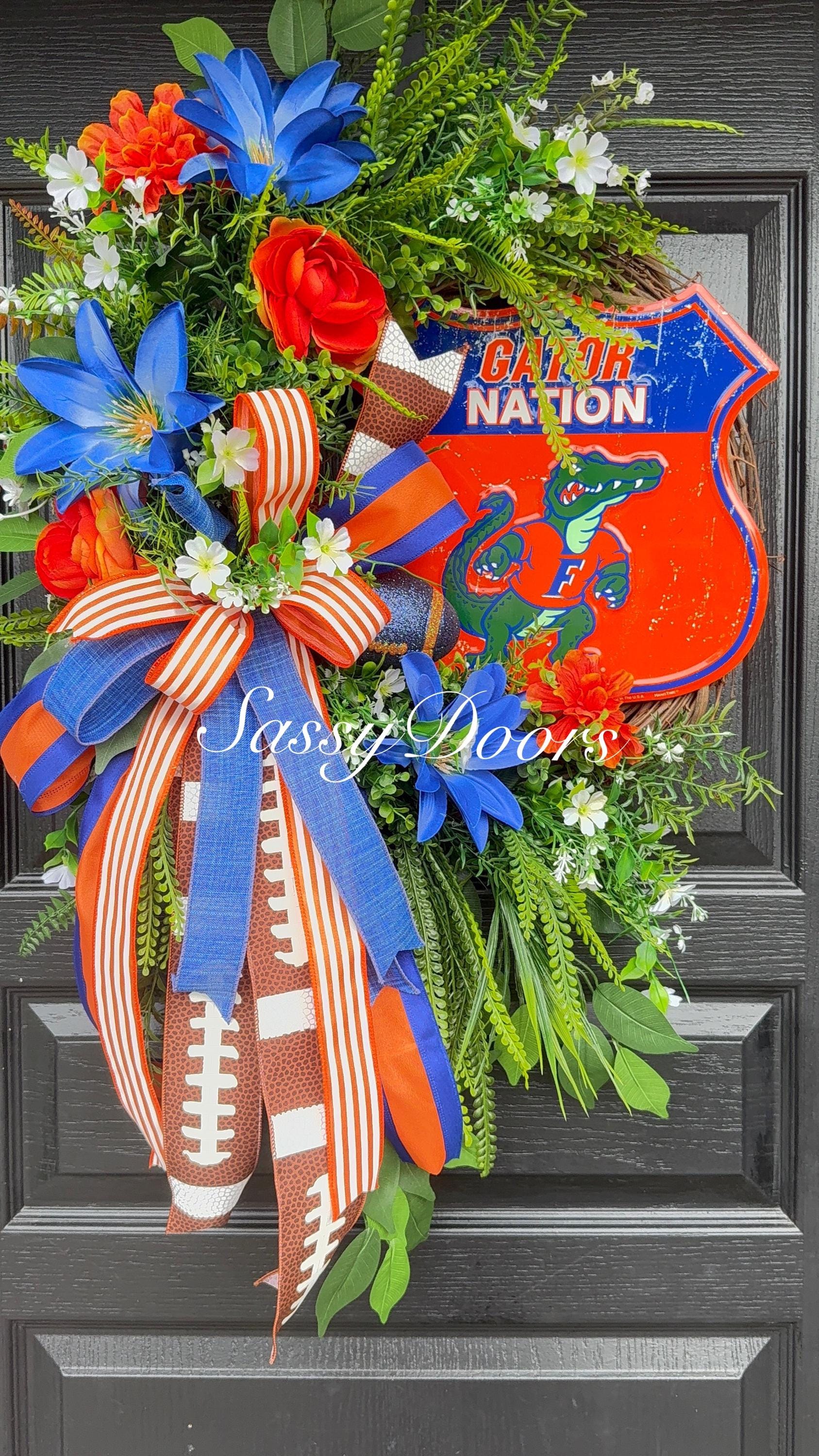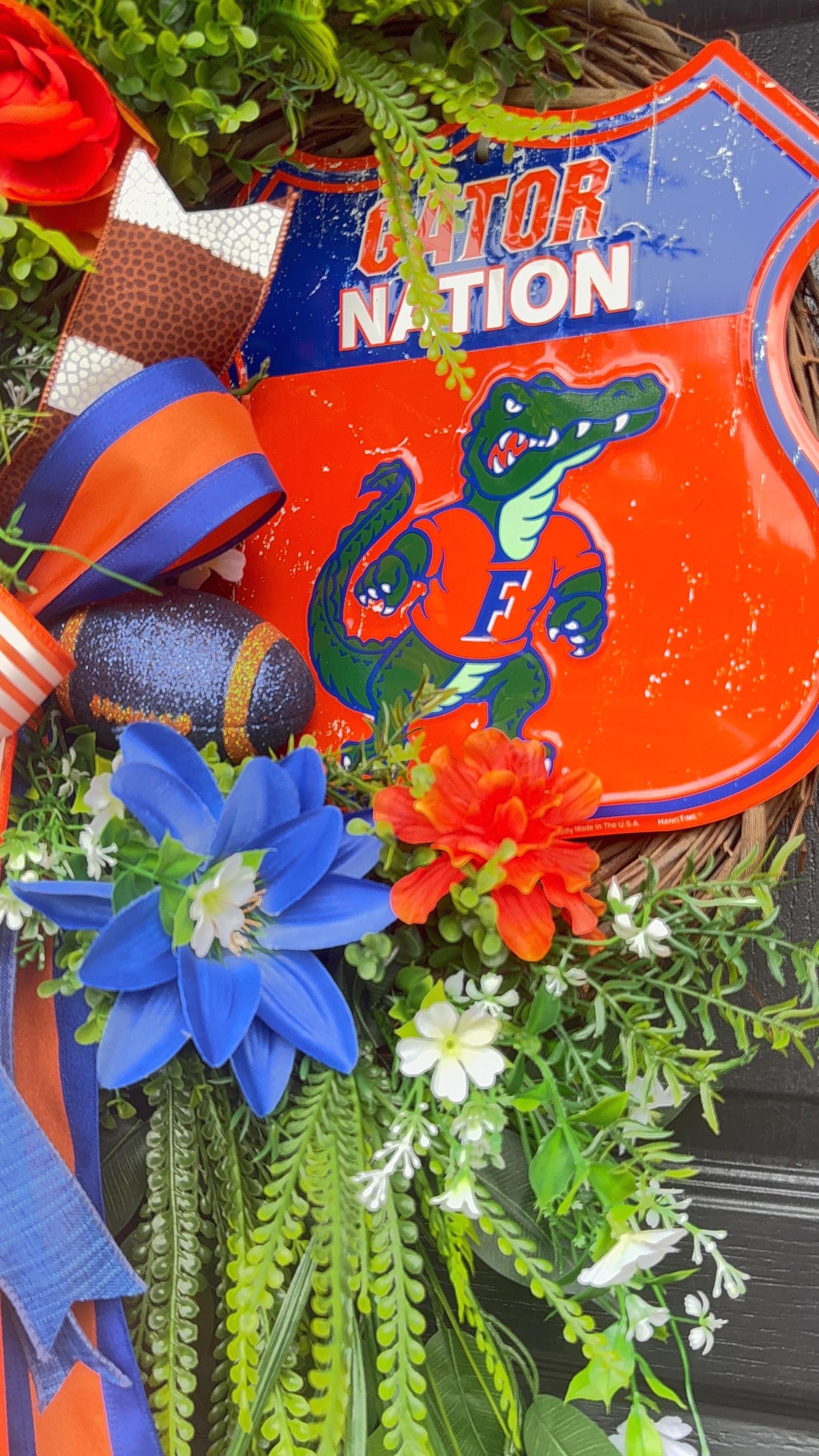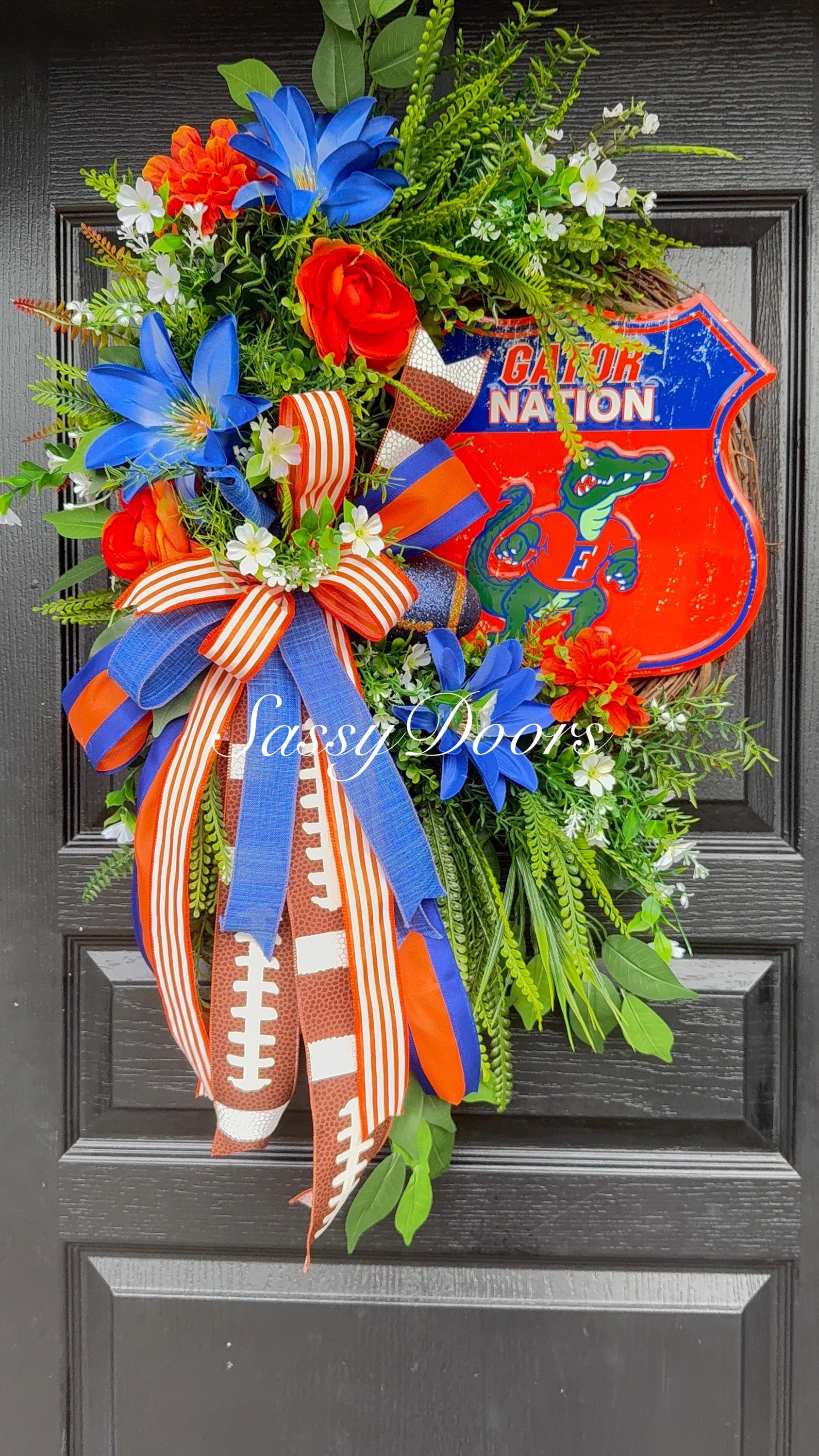 Show your school pride with this beautiful Florida Gators College alumni door wreath.