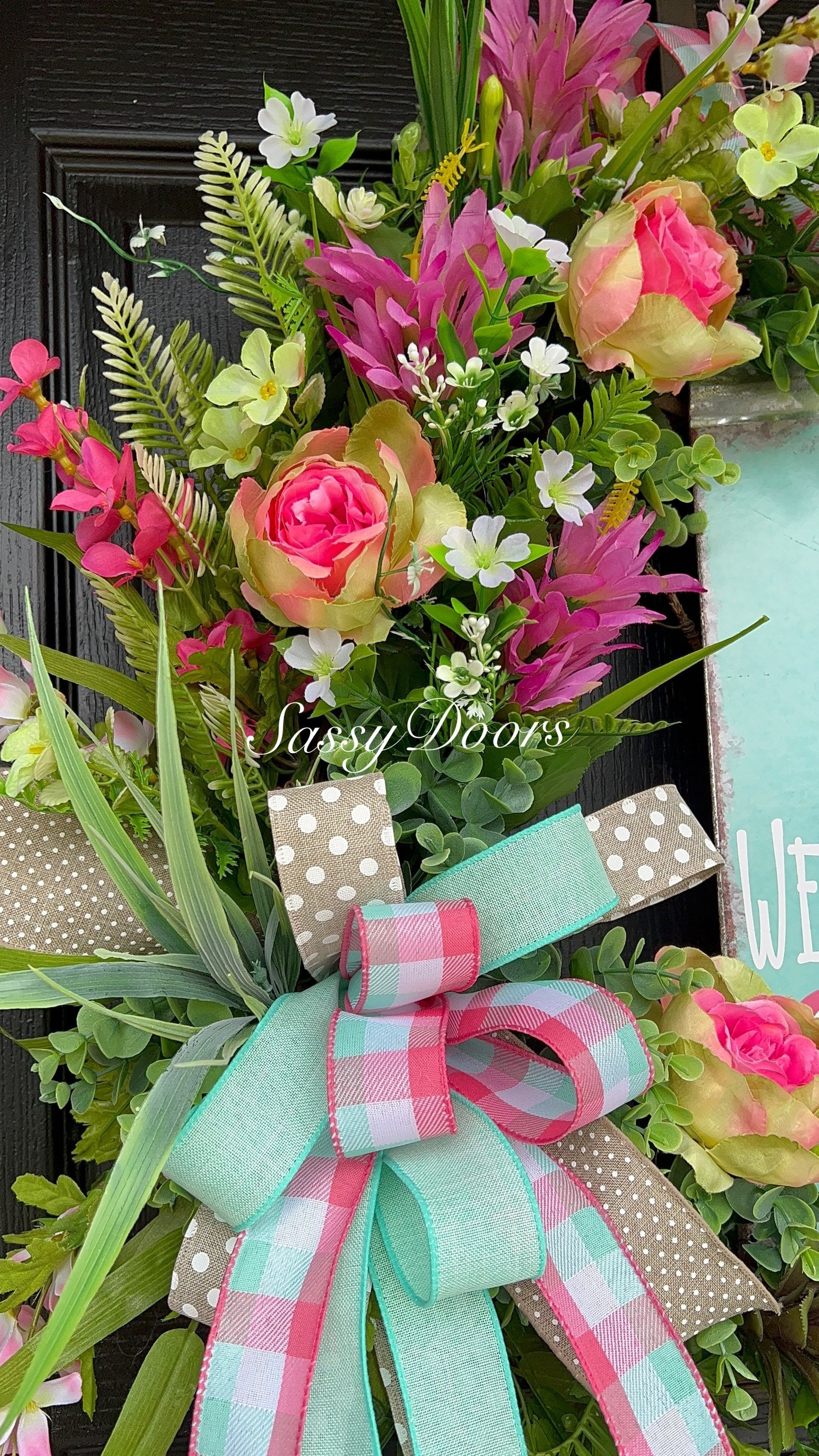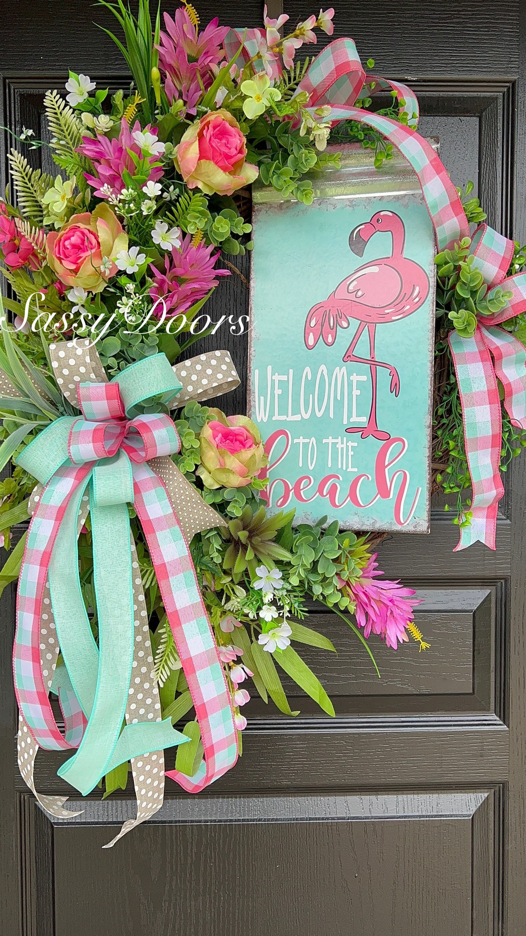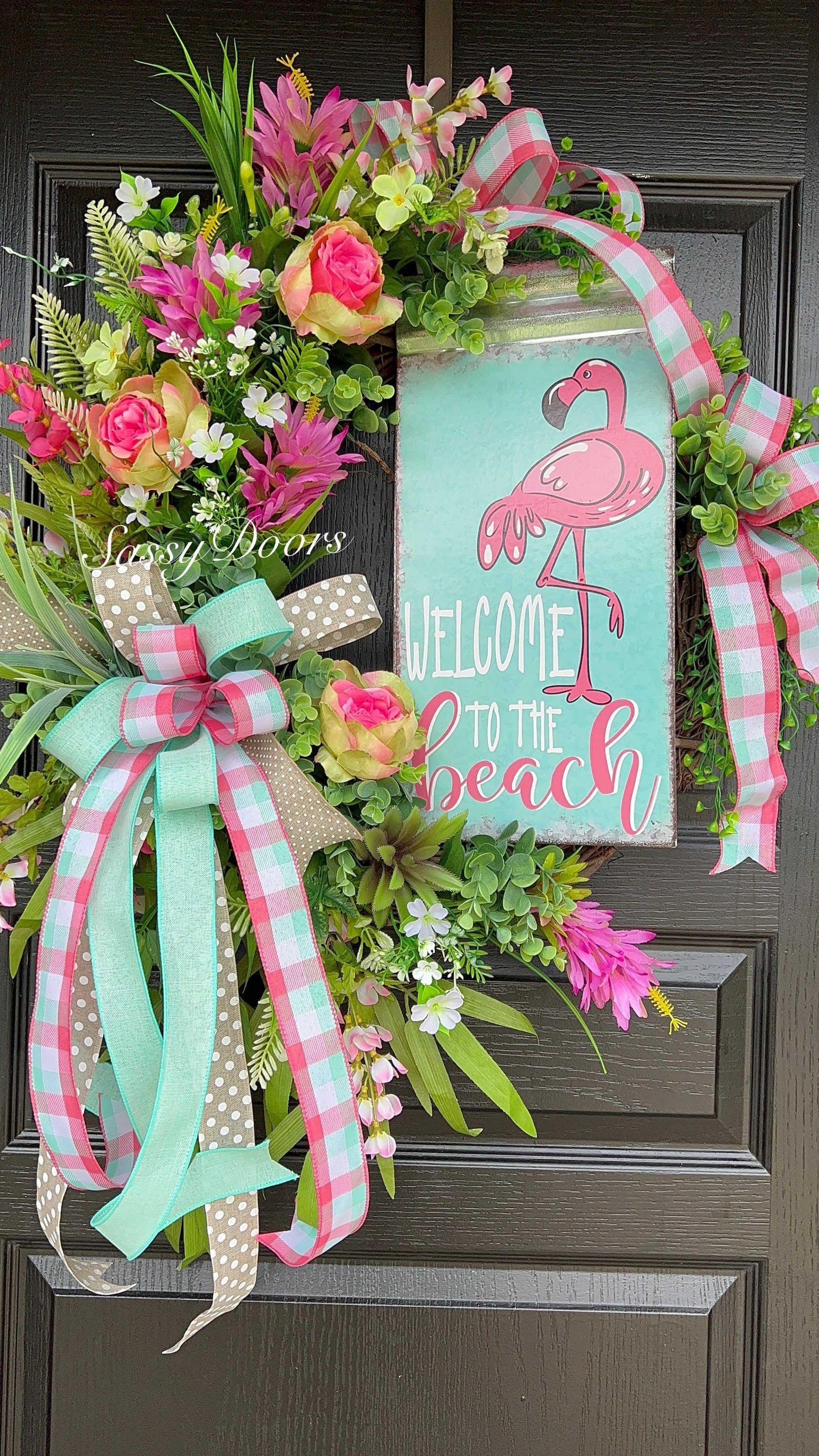 What is Summer without the Pink Flamingo. Don’t have a beach house?? Well, neither do I but I do love to surround myself with a touch of it so a wreath will be perfect! So bring your love for the summertime beaches to your door . Designed to be used indoors as well as outdoors.
