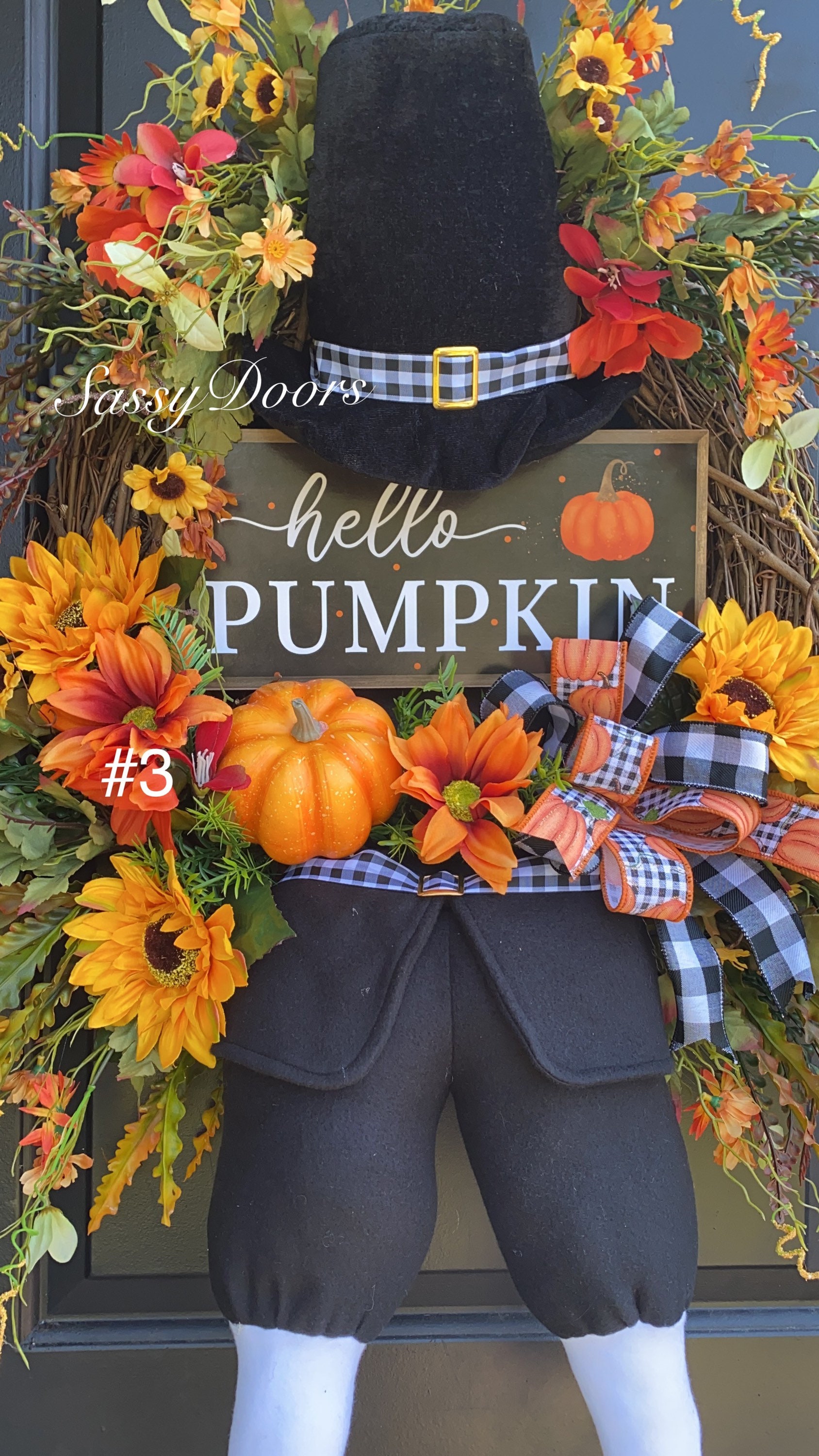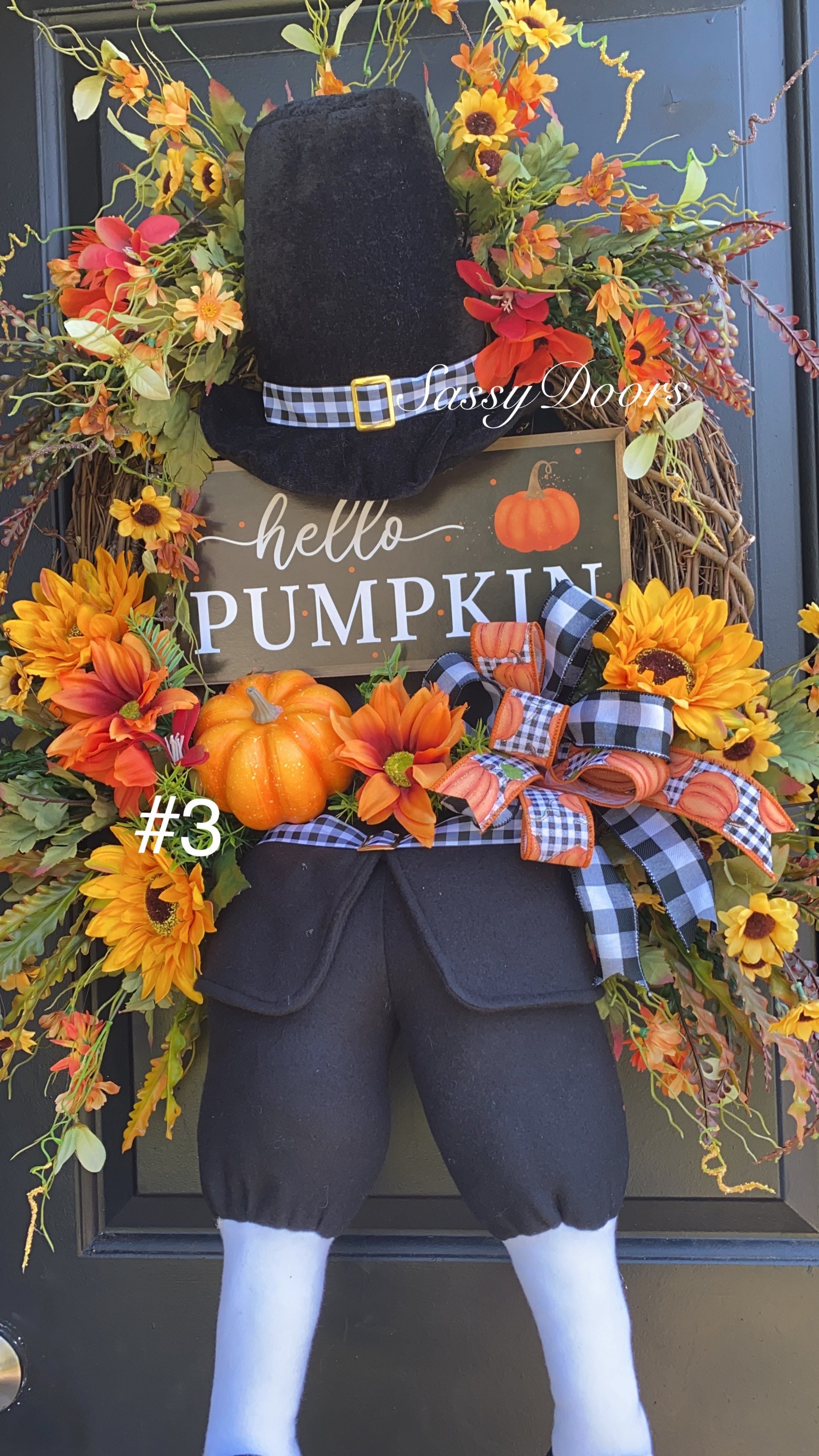 The ever so trendy fall plaid pilgrim thanksgiving wreath is sure to make a bold statement on your door and bring many compliments!