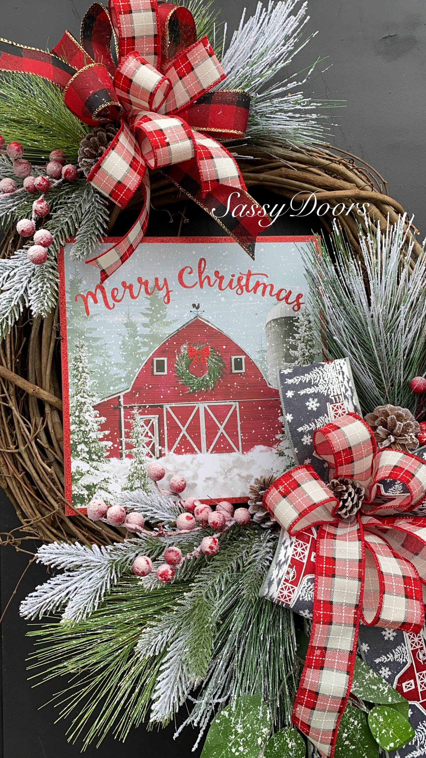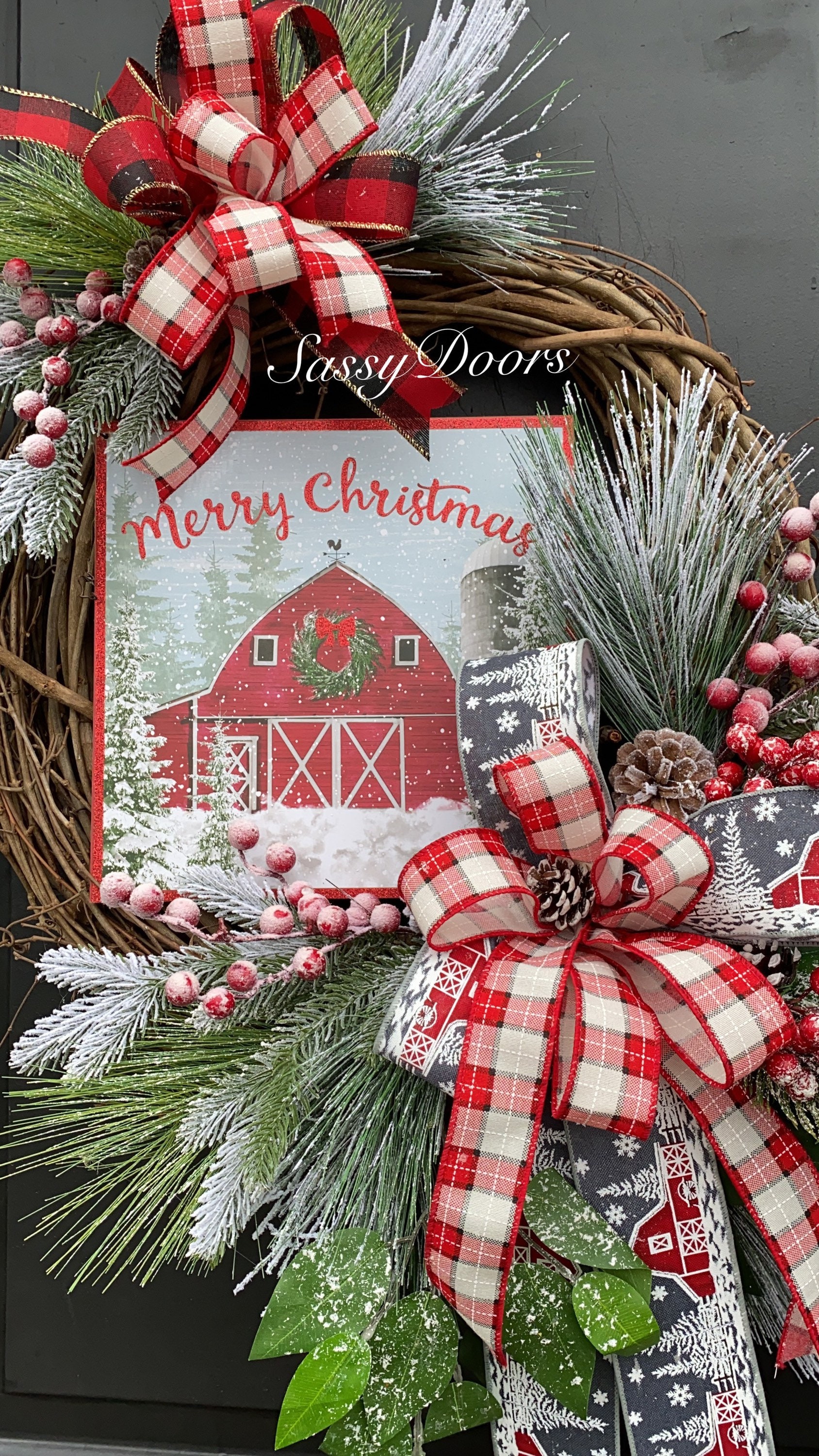 Farmhouse Christmas Wreath, Wreath, Country Barn Wreath, Rustic Christmas Decor , Country Christmas , Sassy Door Wreath ,