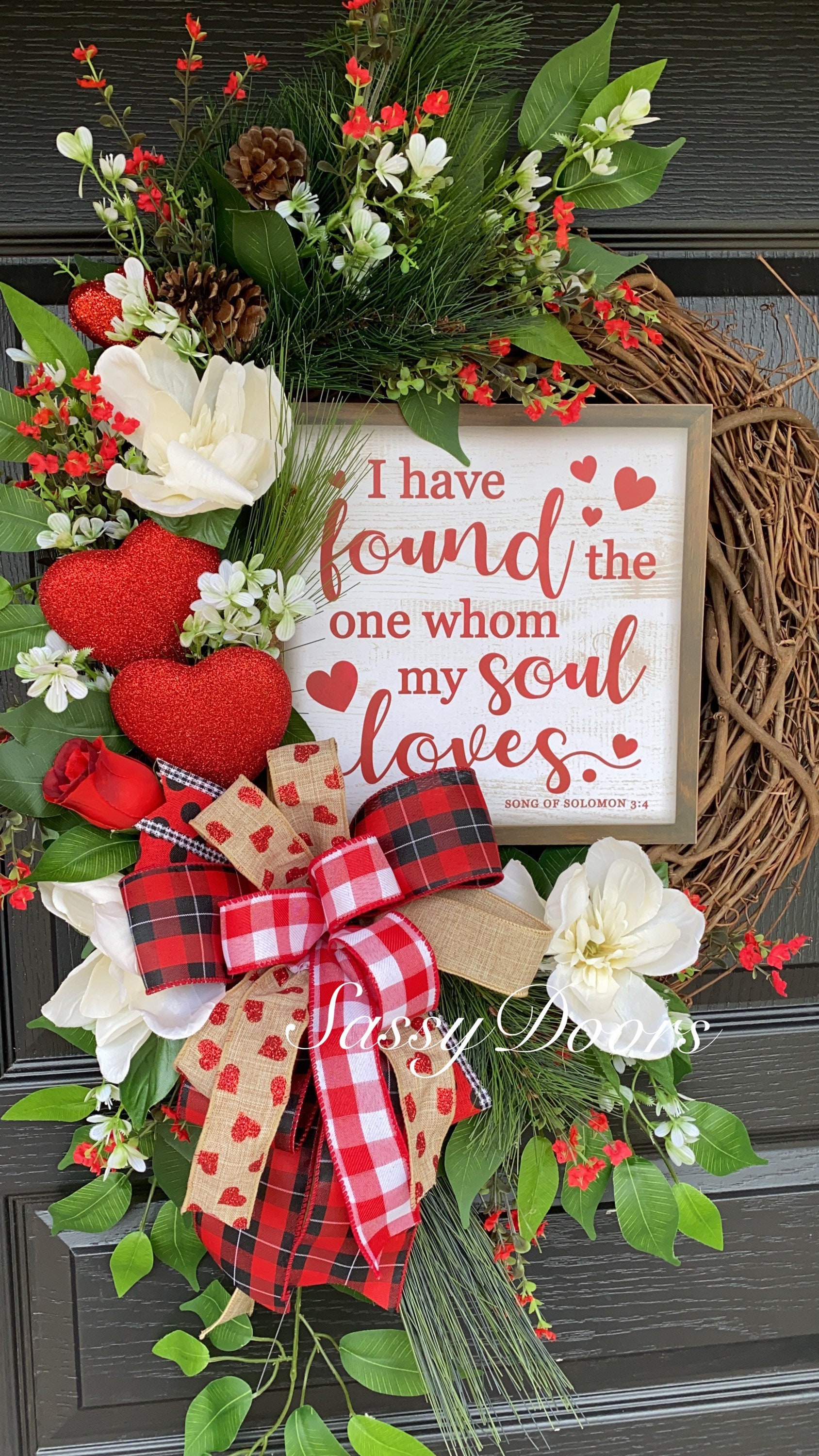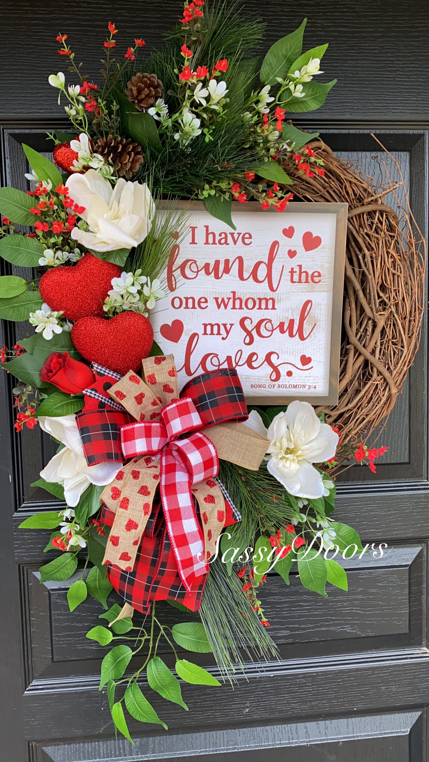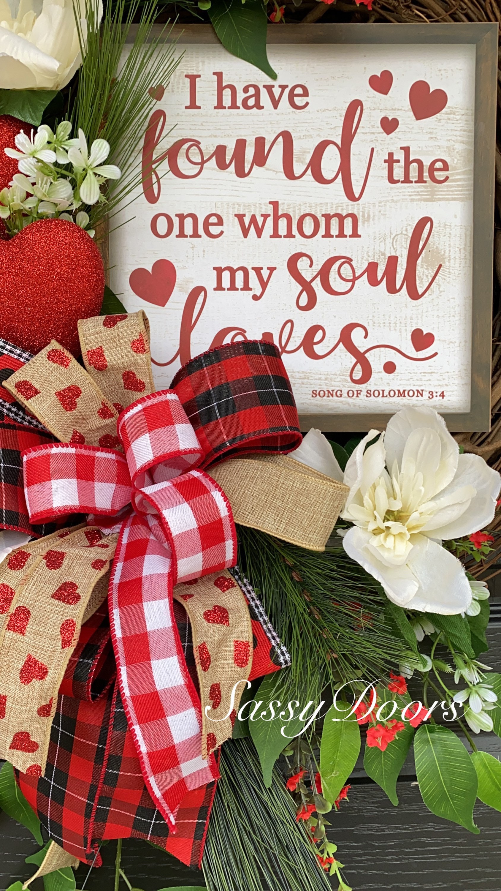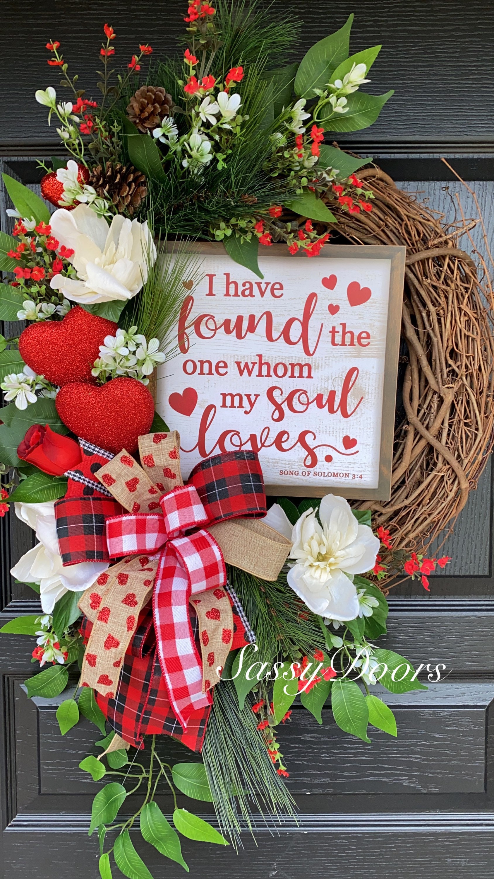 Wow you door and guest with this farmhouse Valentine Wreath. This valentine door wreath will bring a smile to you and your guest.